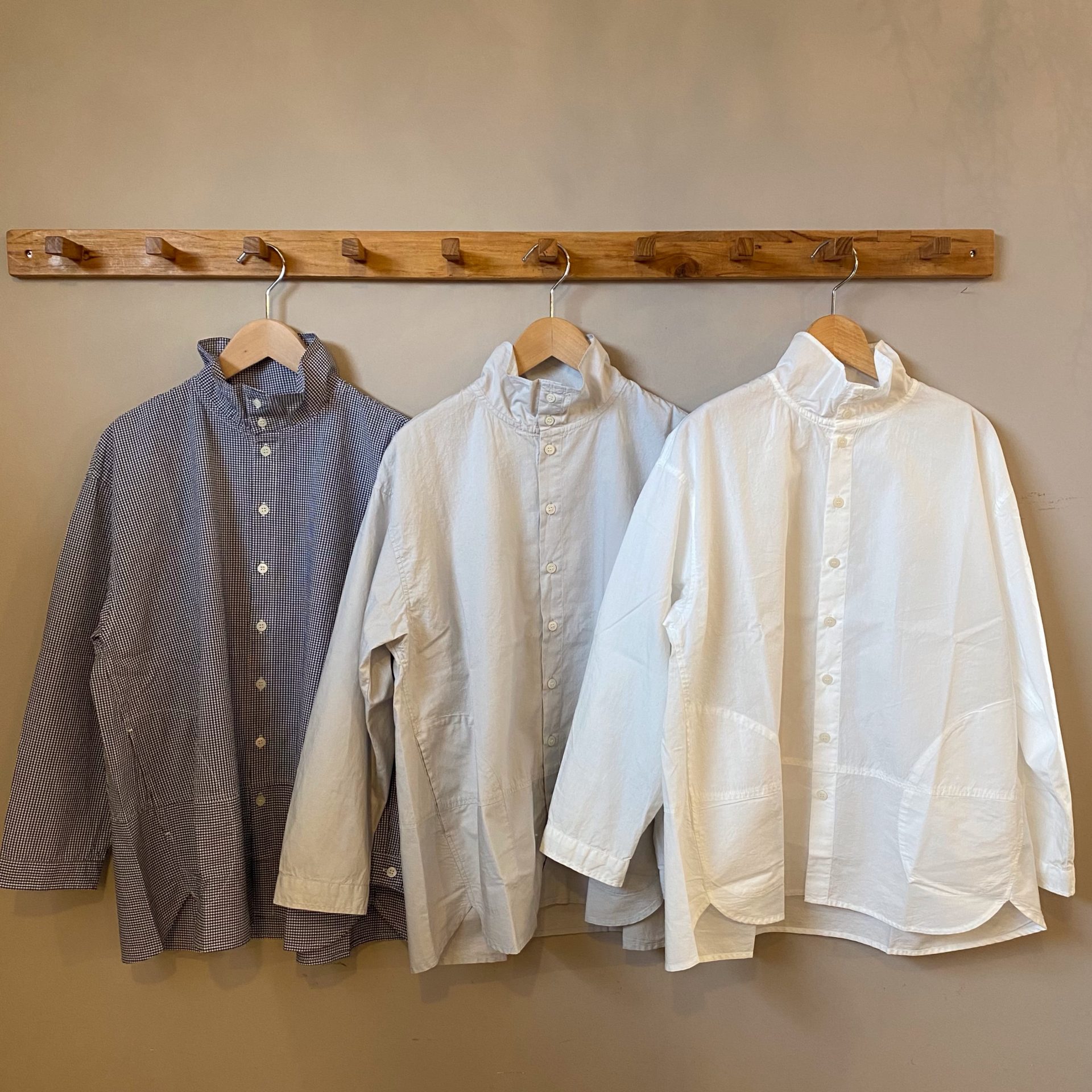 Bico grin ブロードハイカラーシャツ 襟元がふんわり、雰囲気の良いブラウスです♪ ポケットも付いています♪ 9,000yen+tax 2021-01-12 by chabbit grin < LISA LARSON grin >