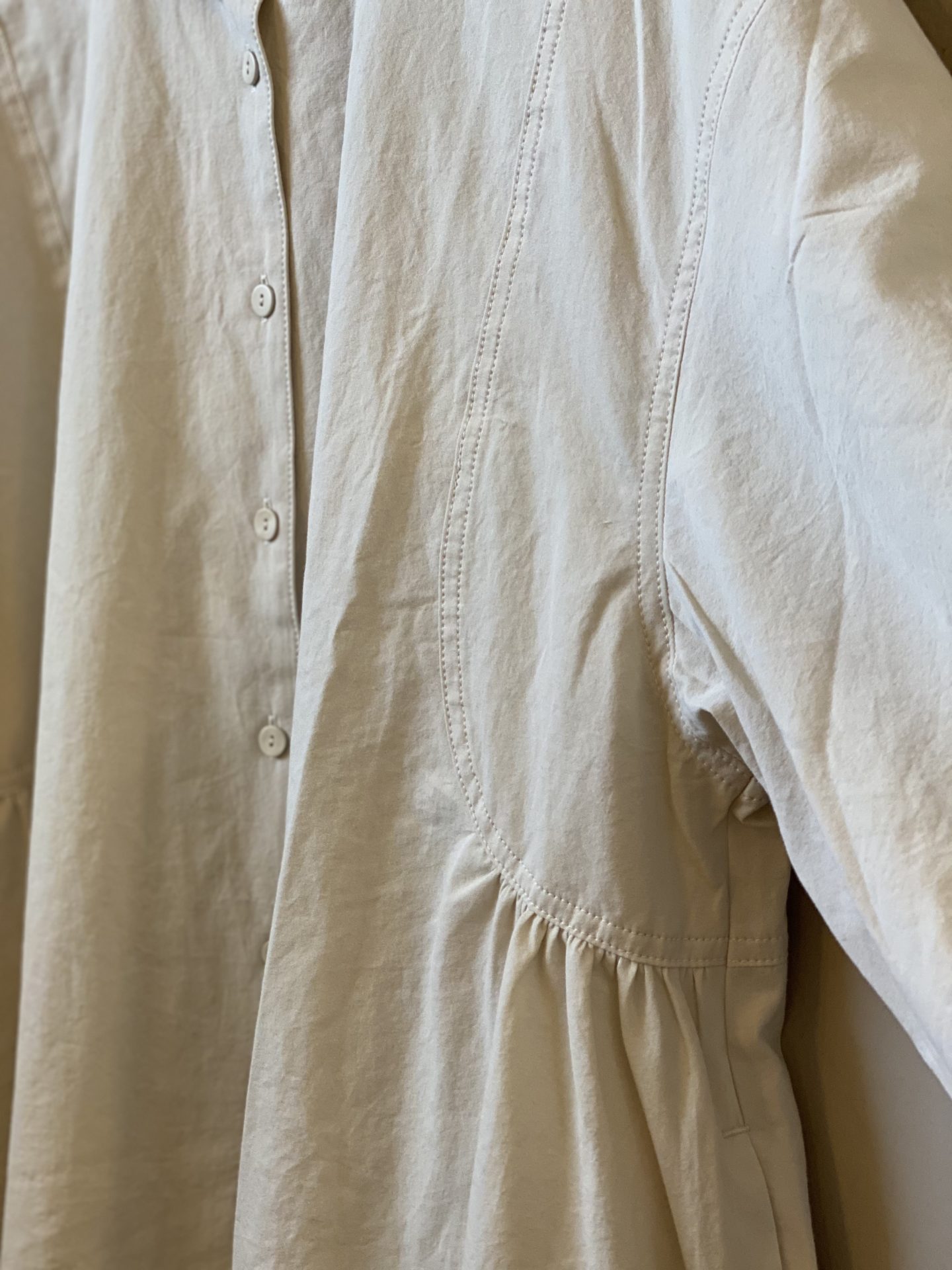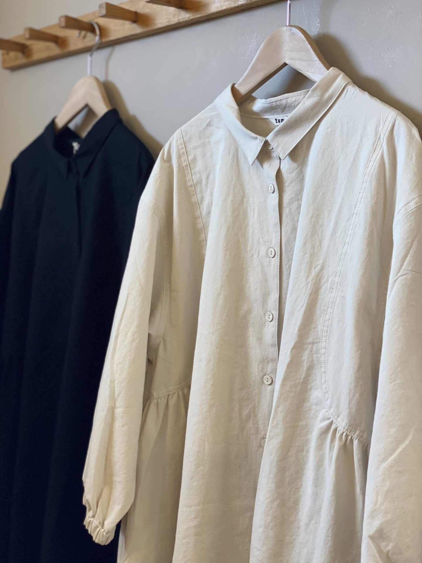 Bico tumugu 羽織りにもなるワンピースが入荷しました♪ 脇の切り替えのデザインがかわいいです☆ 着丈 114センチ cotton 100% 21,800yen+tax 2021-01-15 by chabbit tumugu < UNIVERSAL TISSU LAITERIE >