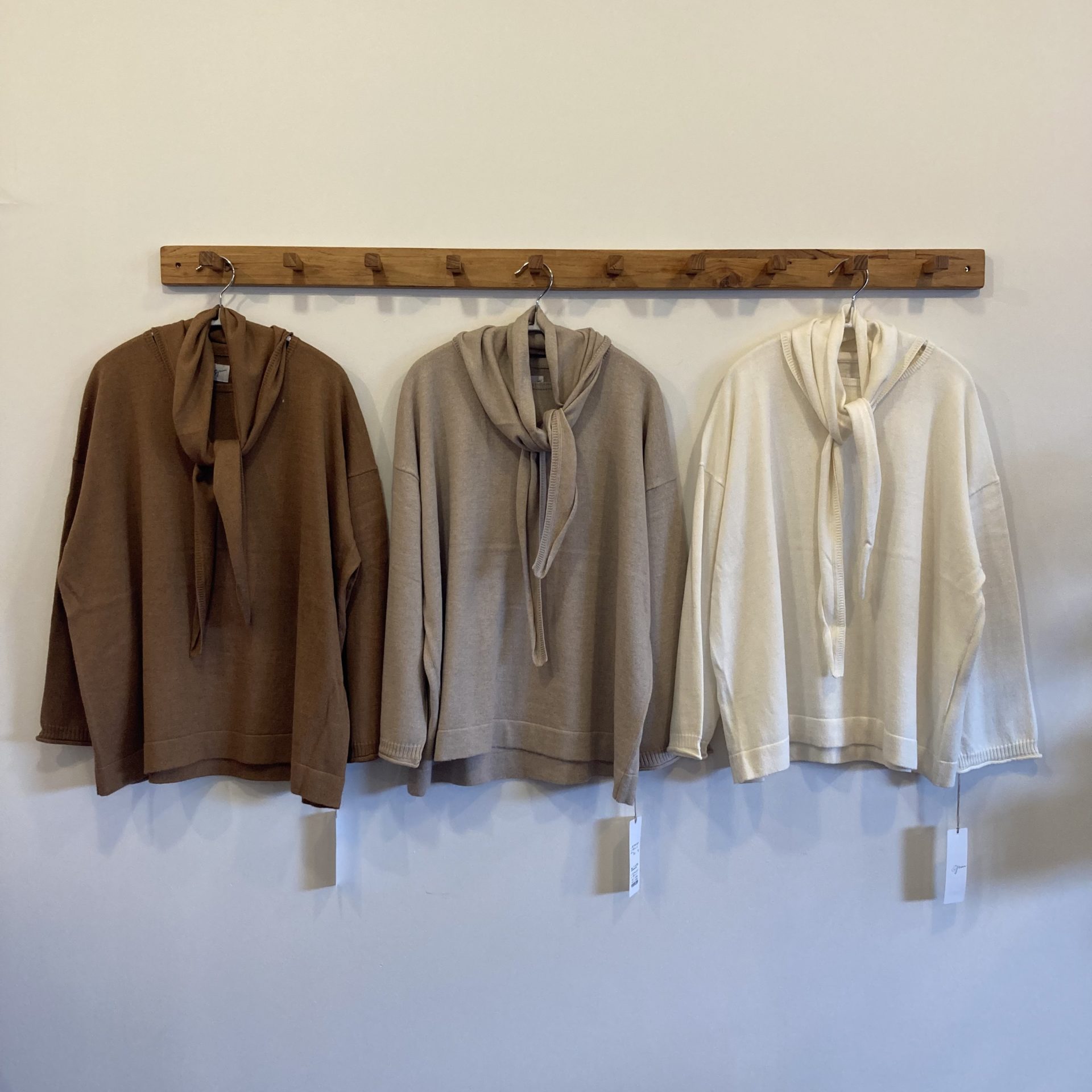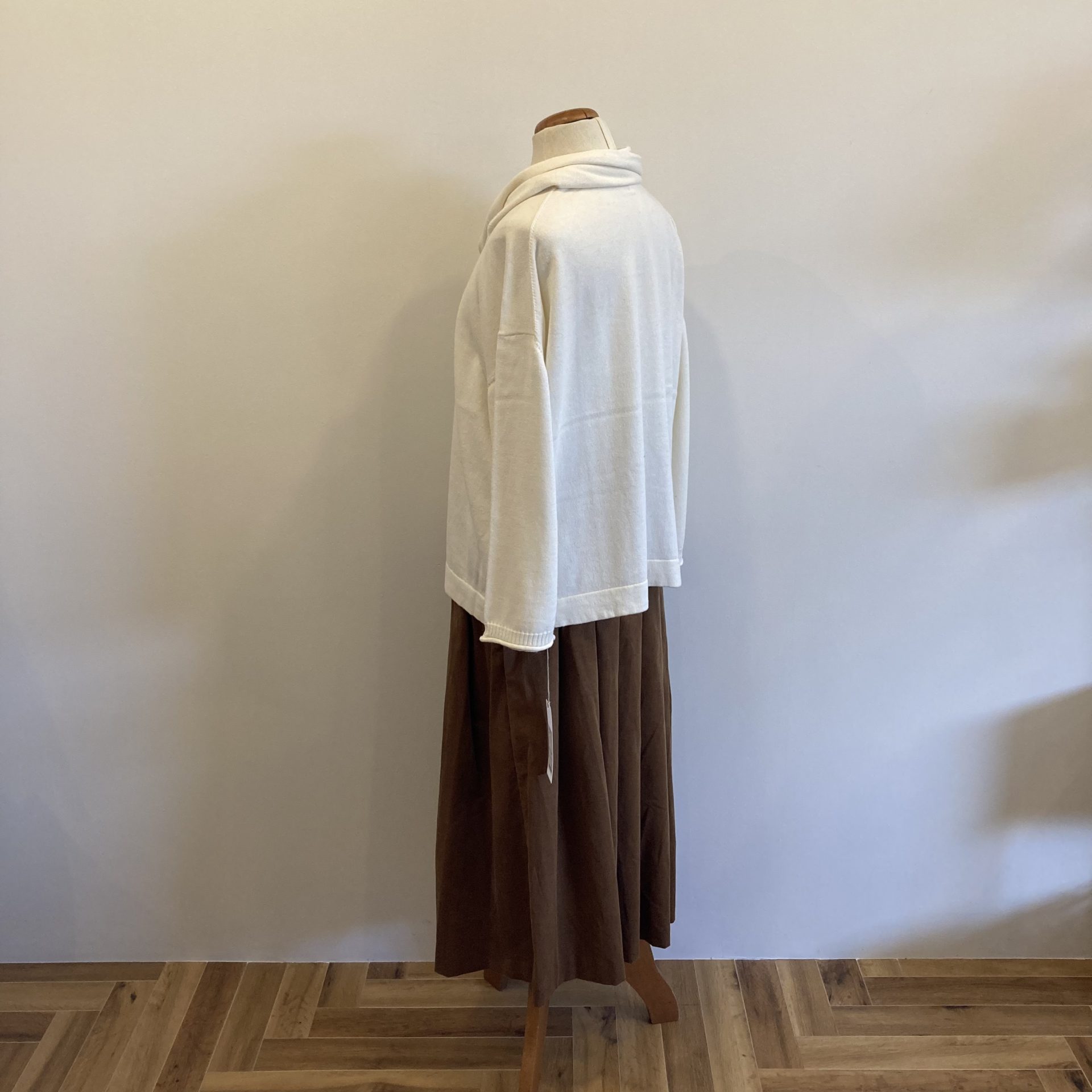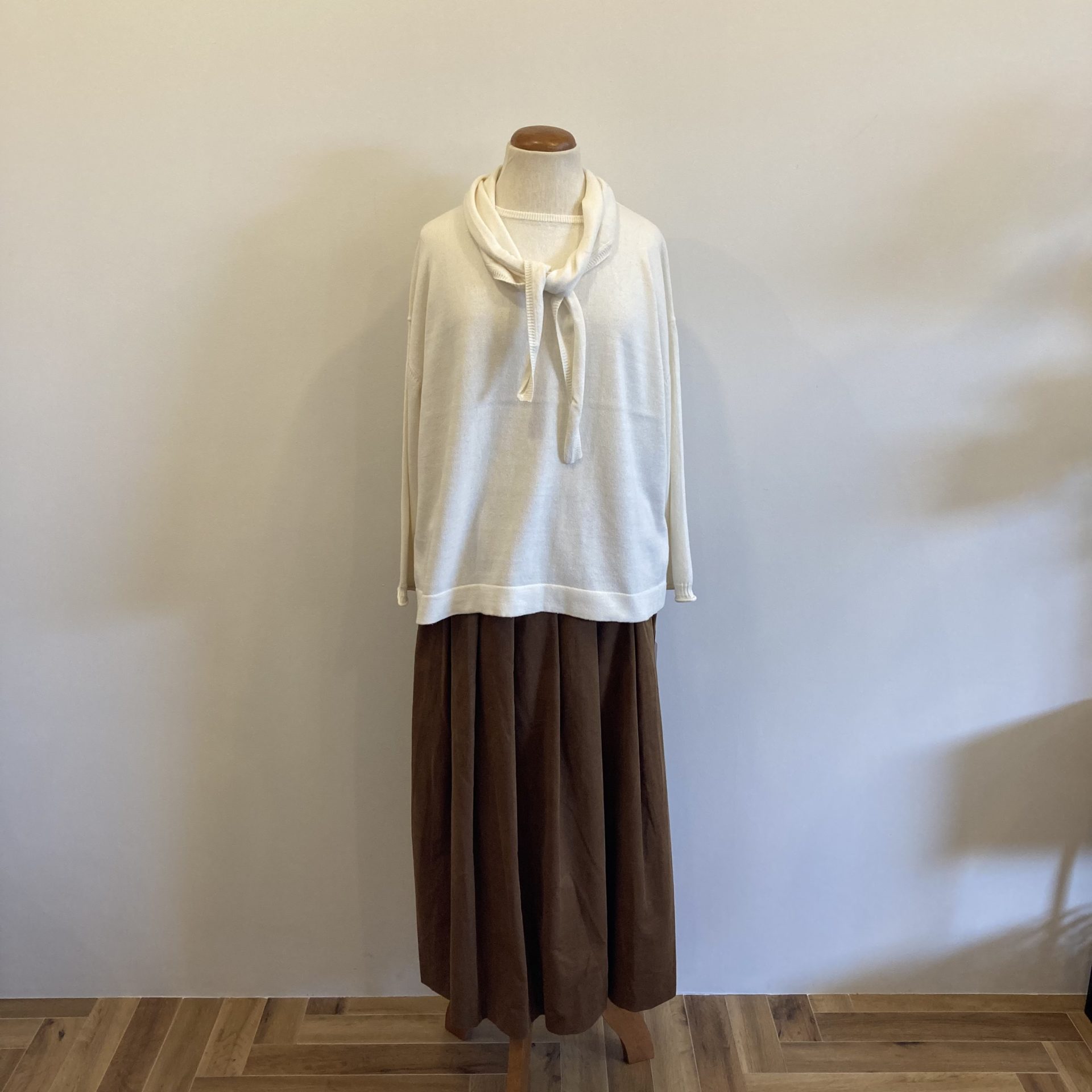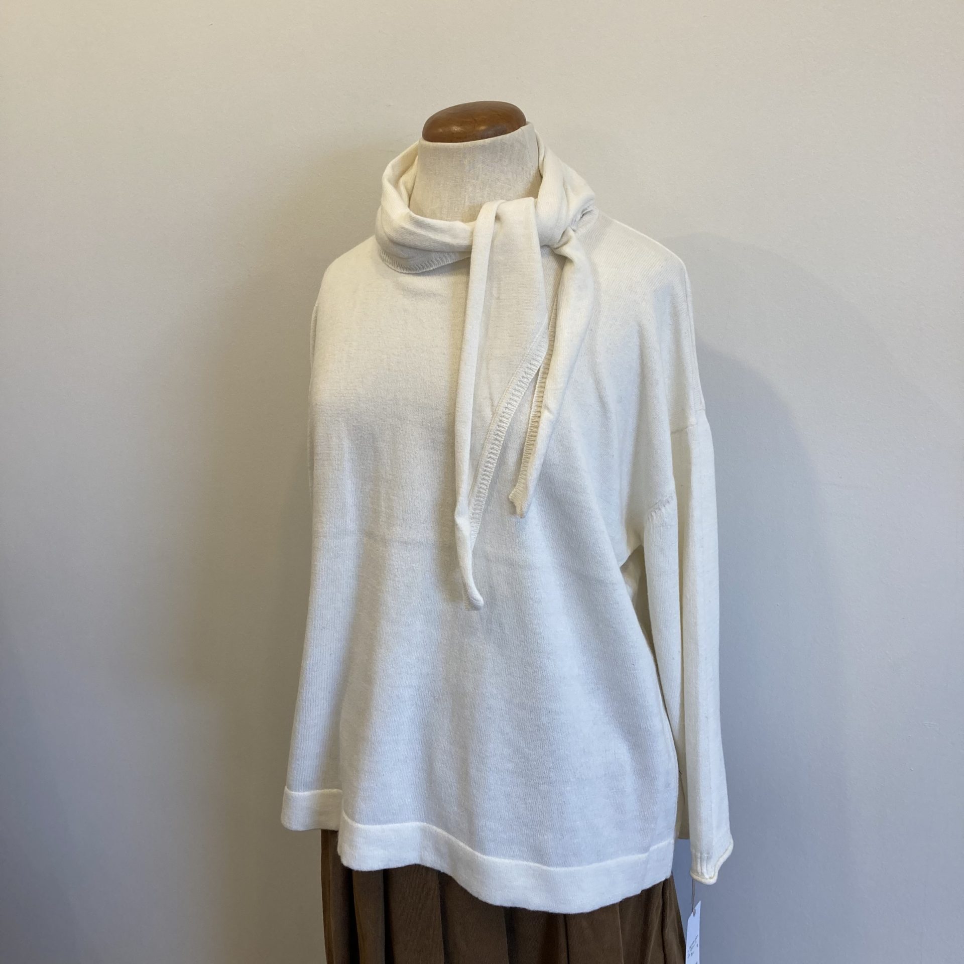 Bico grin コットンカシミアスカーフプルオーバー コットン95% カシミア5% 14300yen 首元に付属しているスカーフは色々な巻き方ができますよ。 2021-09-09 by chabbit grin < grin NOUVELLES DU PARADIS >