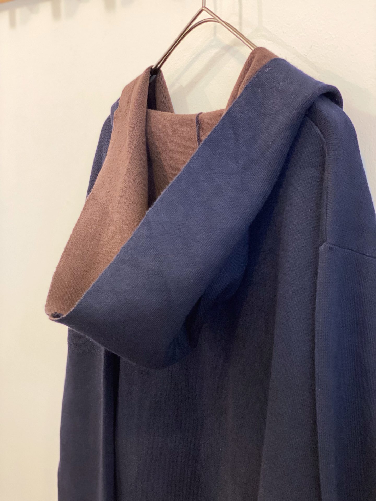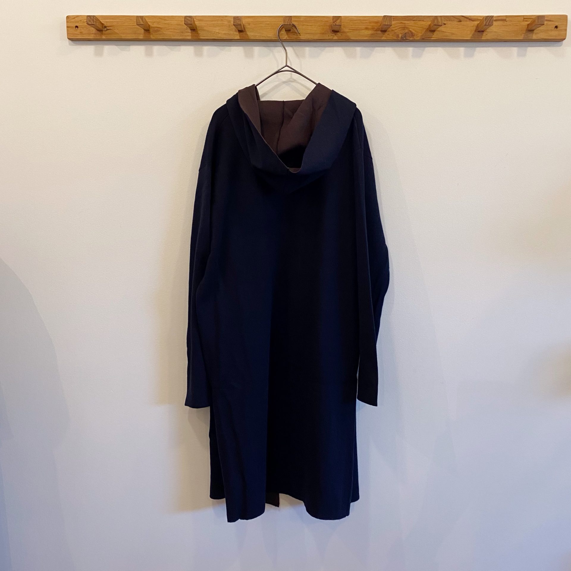 フード付きニットロングコート