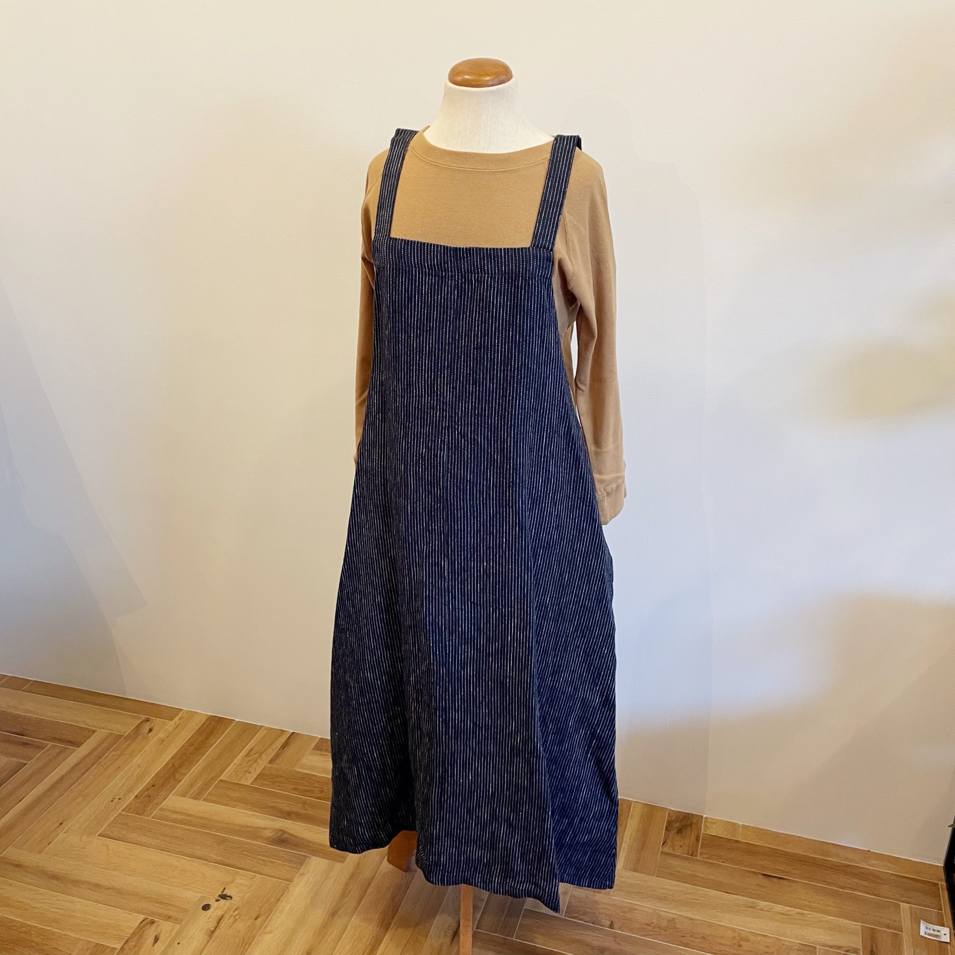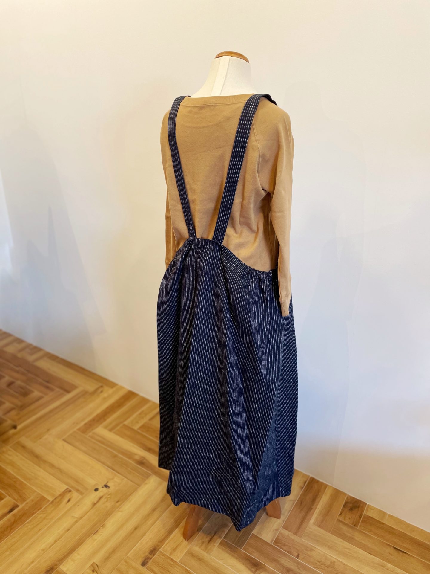ロング丈のジャンパースカートです。着丈はボタンで調節できます☆