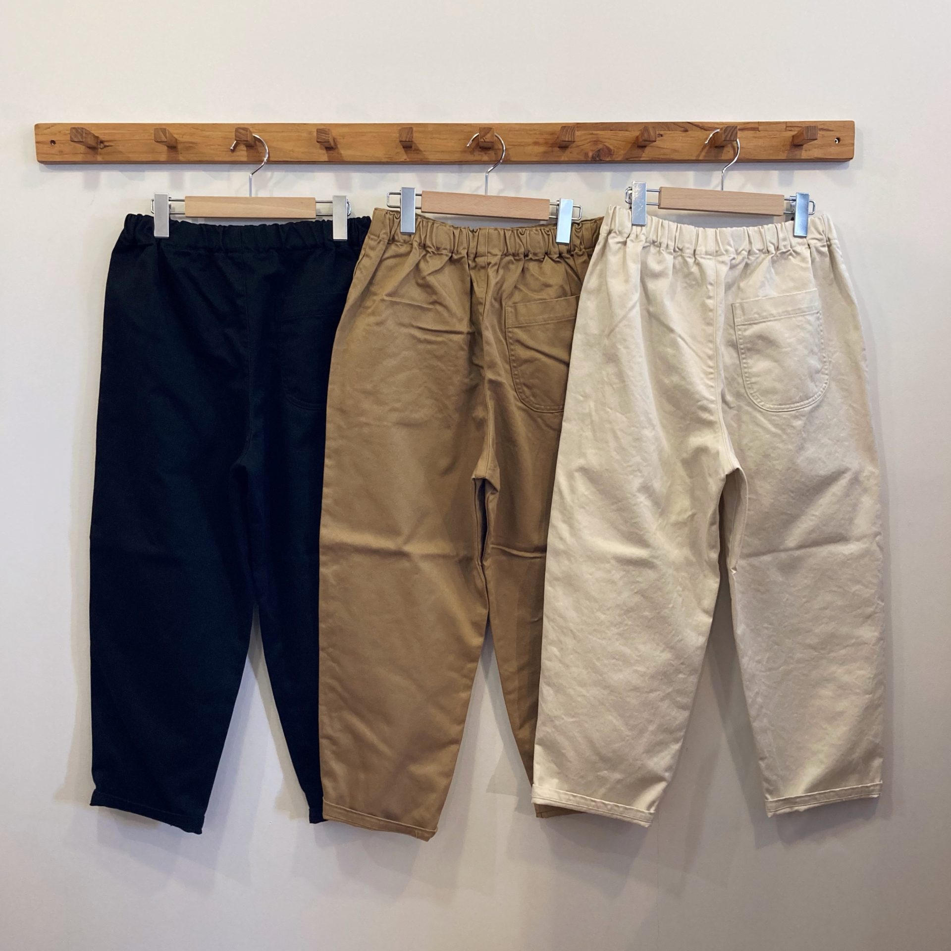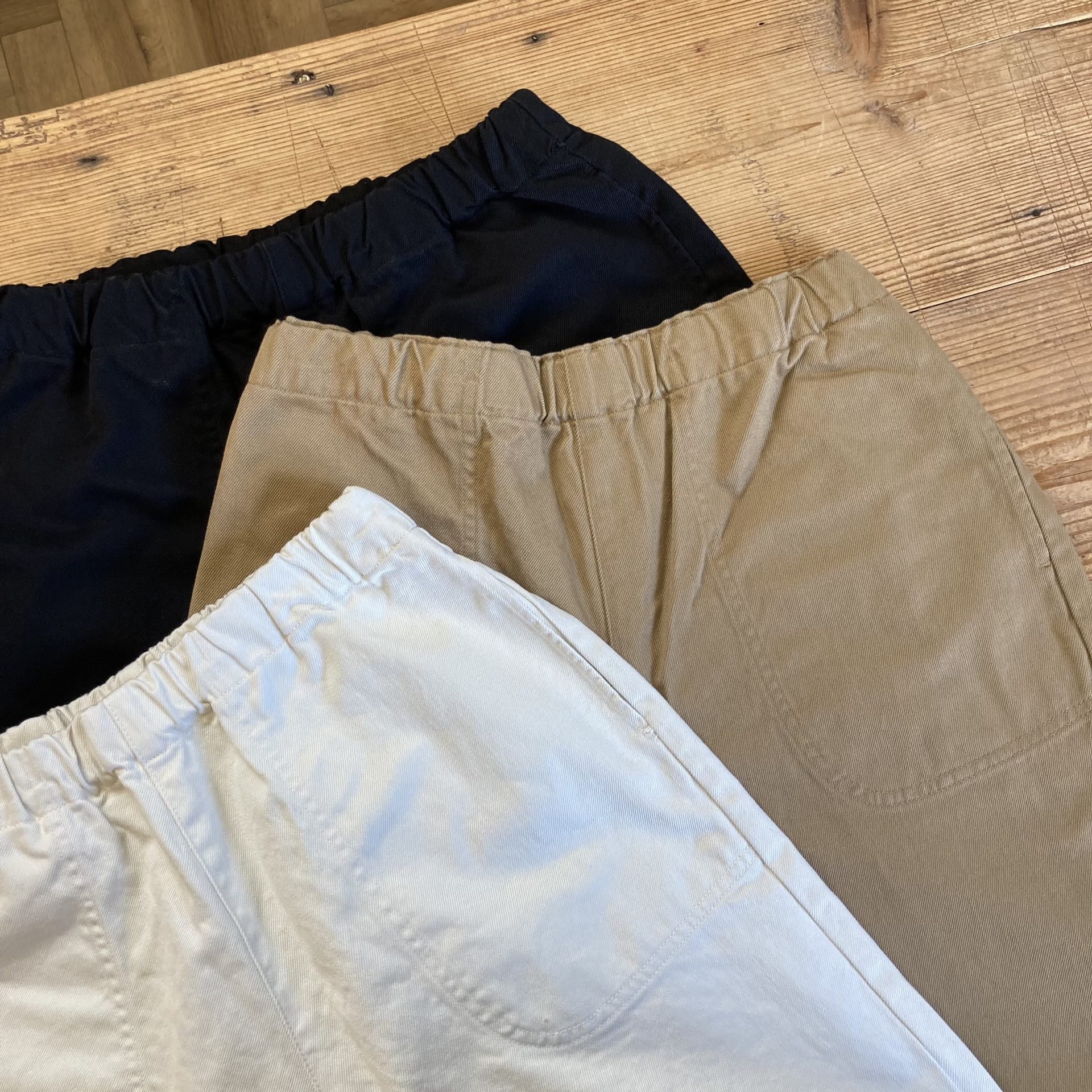 ウエストはゴムと紐の仕様で、ゆったりしたしたサイズ感ですが、履くとすっきりシルエットです。