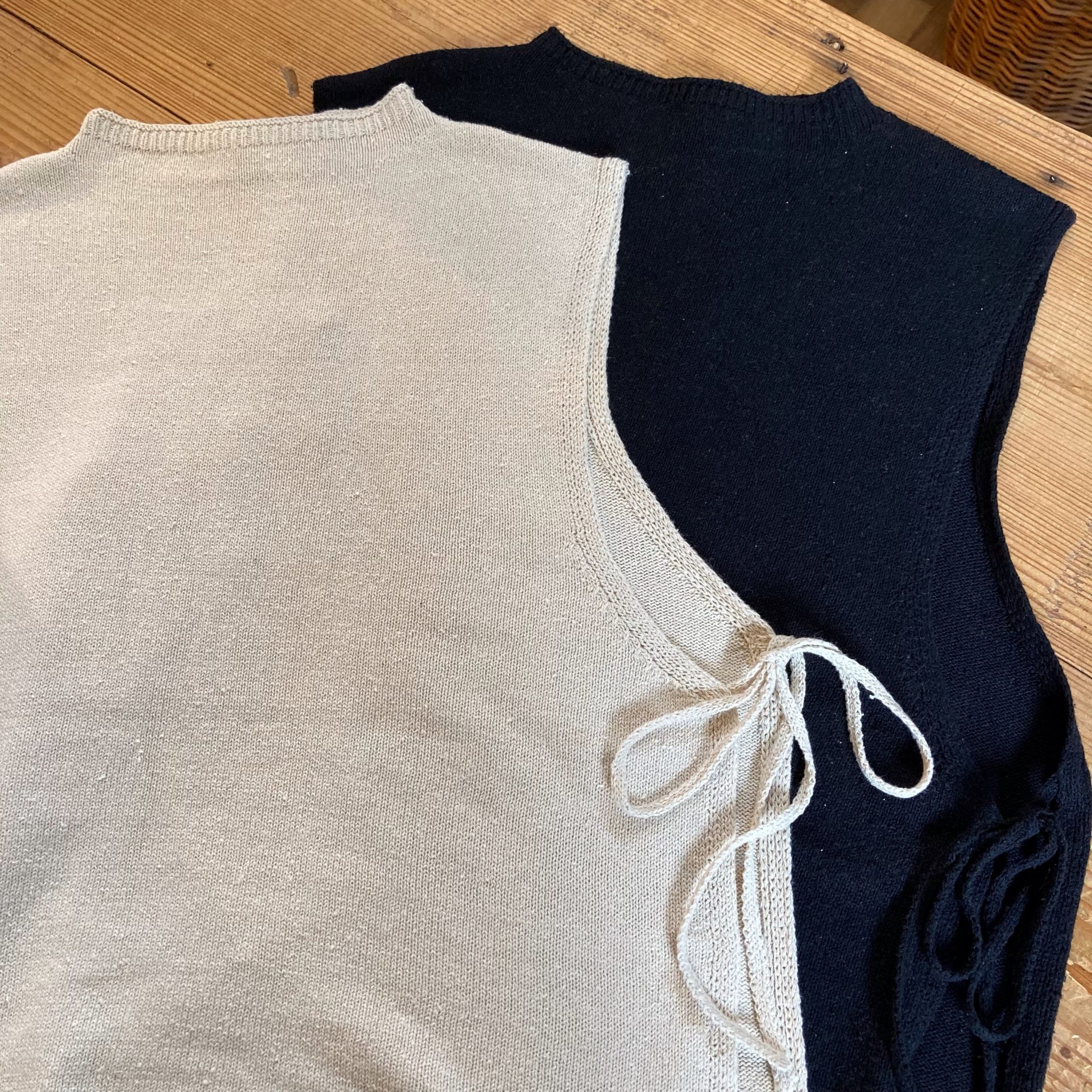 Bico MidiUmi ニットベスト コットンシルク素材なので年中活躍しそうですよ。 シルク75% コットン25% 11990yen 両サイドは紐で結ぶ仕様です。 2022-02-04 by chabbit MidiUmi < HARVESTY harmonie >