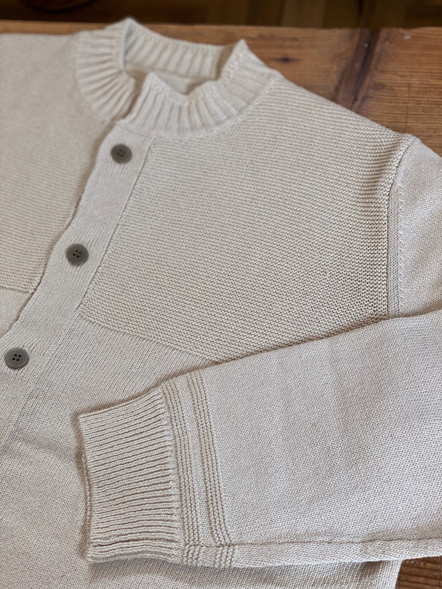 Bico NATURAL LAUNDRY 綿麻ニットカーディガン コットン67% ナイロン21% リネン12% 14300yen 袖口や裾もさりげなく可愛いですよ。 2022-02-10 by chabbit NATURAL LAUNDRY < Pragment grin >