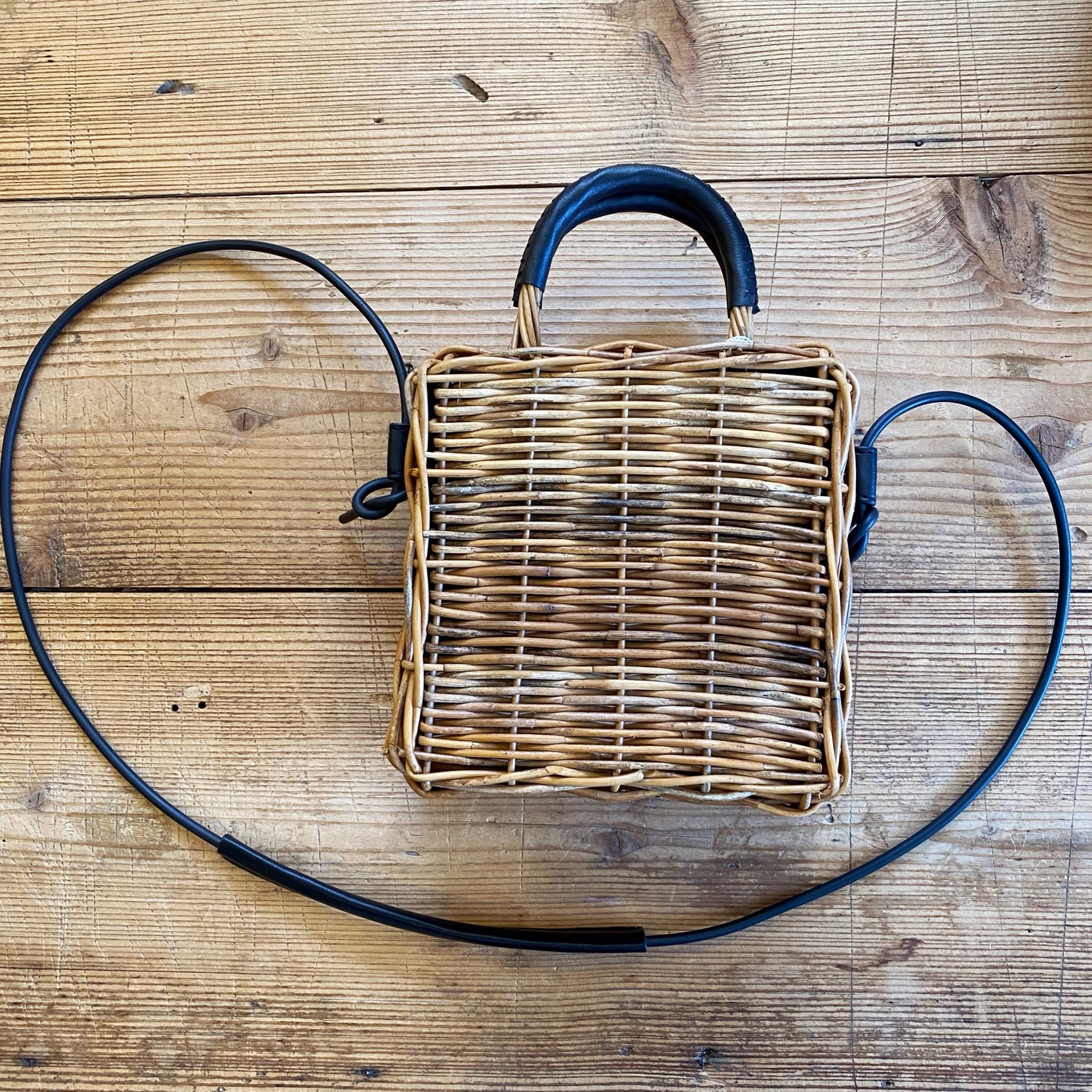 端正なスクエア型が可愛いらしいかごバッグです☆ラタン(藤)の一種である貴重なアラログを使用し、味わい深い色合いがアンティークを思わせるアイテムです♪