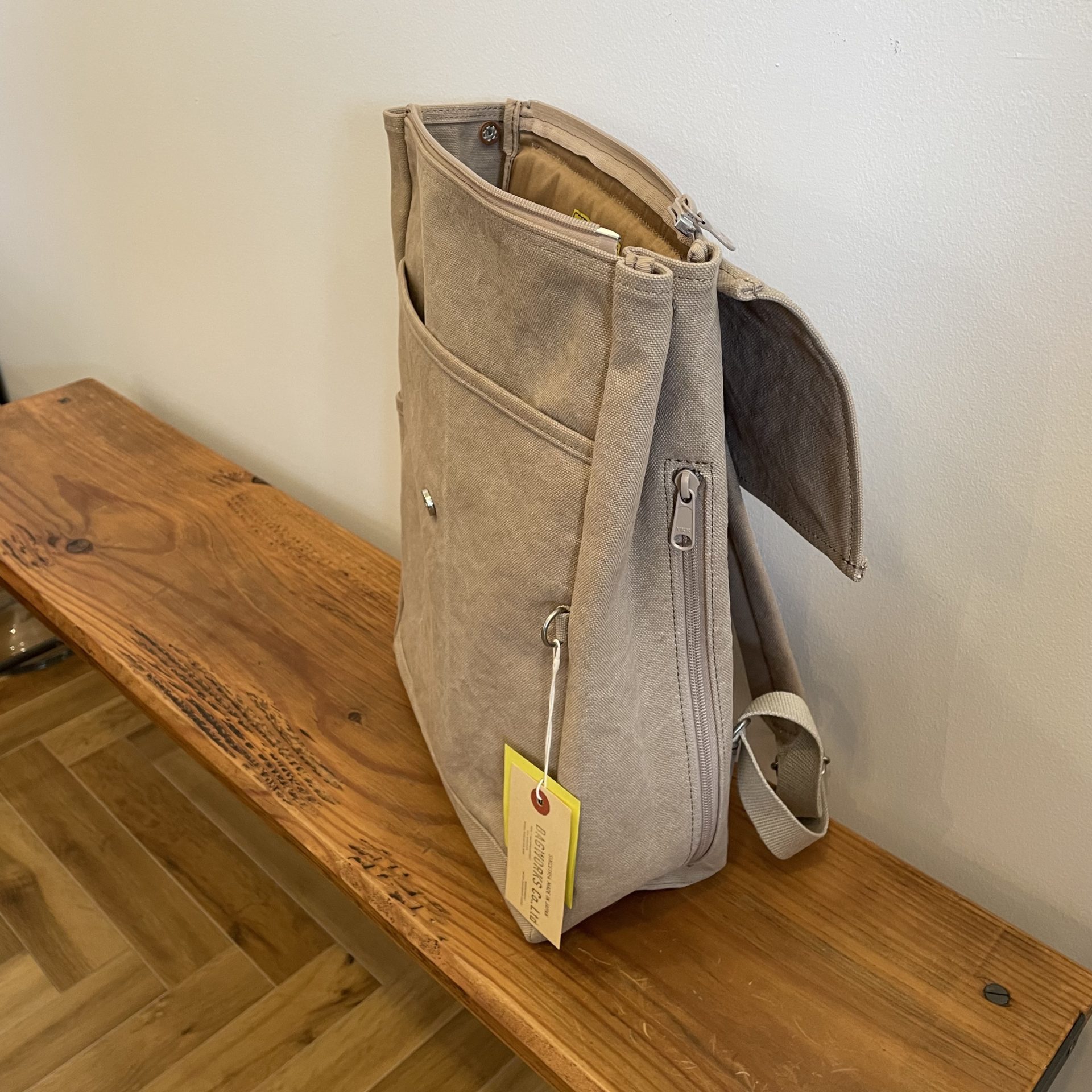 サイド部分にはファスナーが付いているので、背負ったまま収納物を取り出せます♪