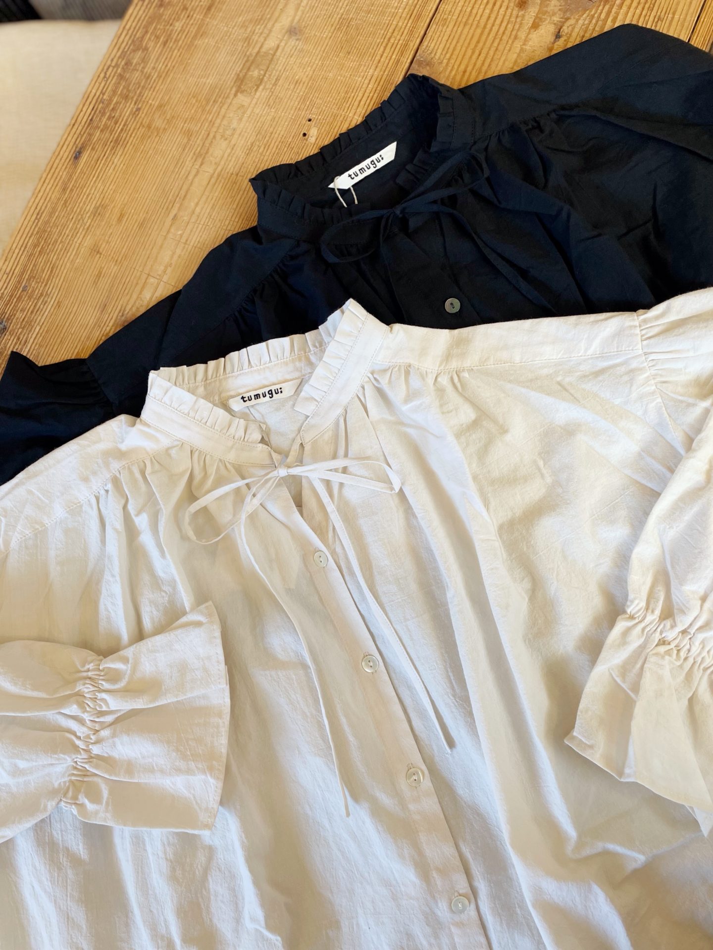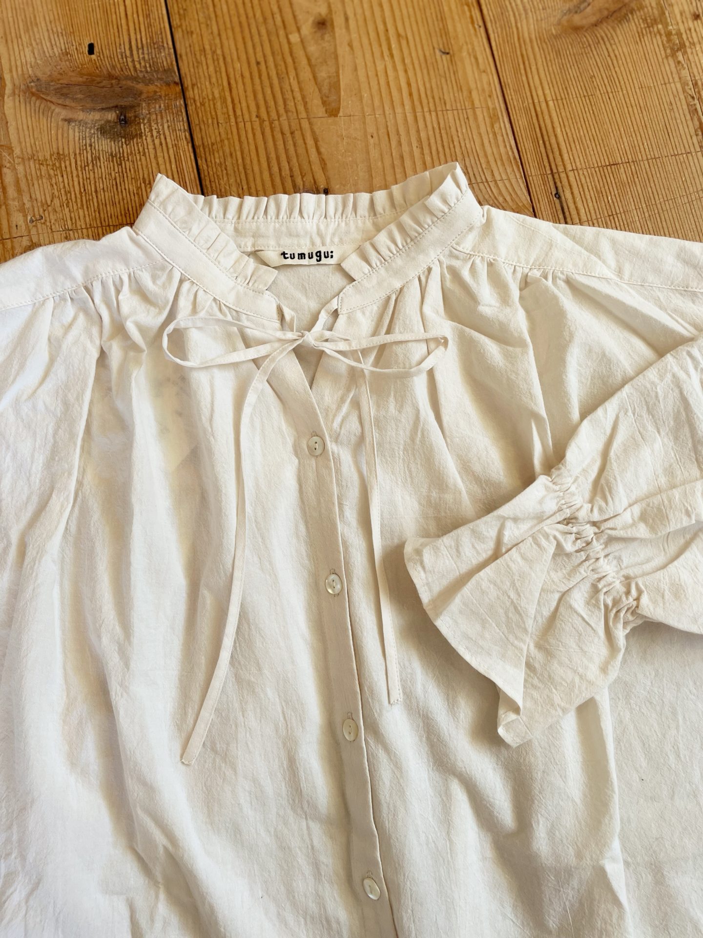 Bico tumugu フリルやギャザーの入った ふんわりとした雰囲気のブラウスです♪ cotton 100% 16280yen 2022-07-30 by chabbit tumugu < OLDMAN’S TAILOR Veritecoeur >