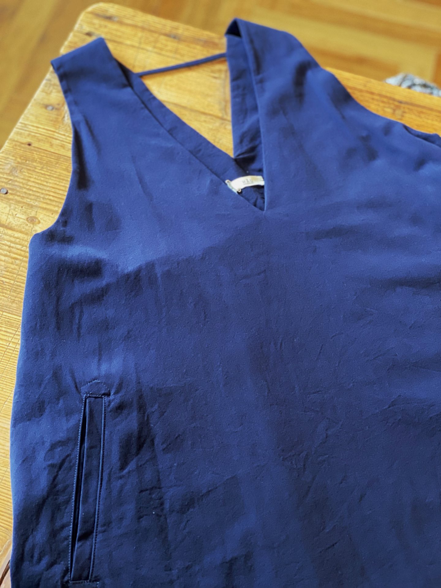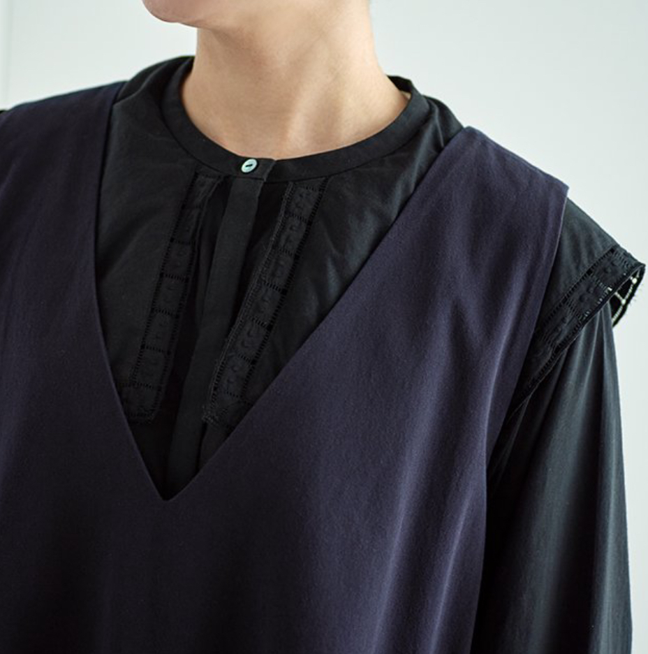 Bico HAU one piece “tidy” きちんと感のあるスタイルにも対応できる、ダークネイビーのカラーのきれいめなAラインワンピースです♪ シャリっとした清涼感のある肌触りです☆ 左脇にファスナーがあり、袖ぐりや身幅にもゆとりがあるので、着心地のよさだけでなく、着脱のしやすさも嬉しいポイントです☆ 綿100% 30,800yen 2022-09-07 by chabbit HAU < HAU つぎはぎや >