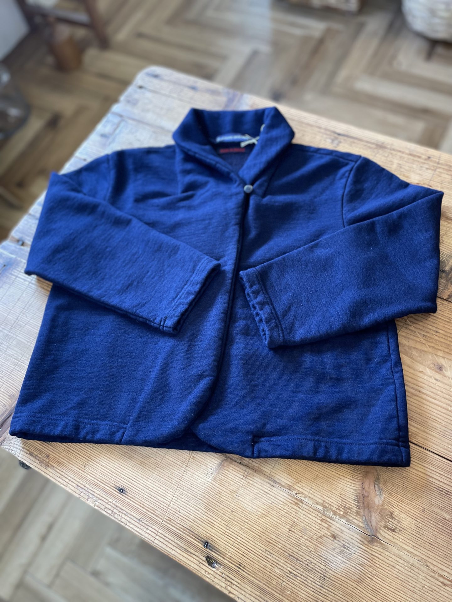 Bico TIGRE BROCANTE ショールカラーボレロカーディガン 短めの丈がキュートな1枚です♪ ワンピースに合わせたり! 着丈 50センチ 度詰めindigo 裏毛cotton 100% 27500yen 2022-11-05 by chabbit TIGRE BROCANTE < tumugu YAKWOOL ORGANIC COTTON >