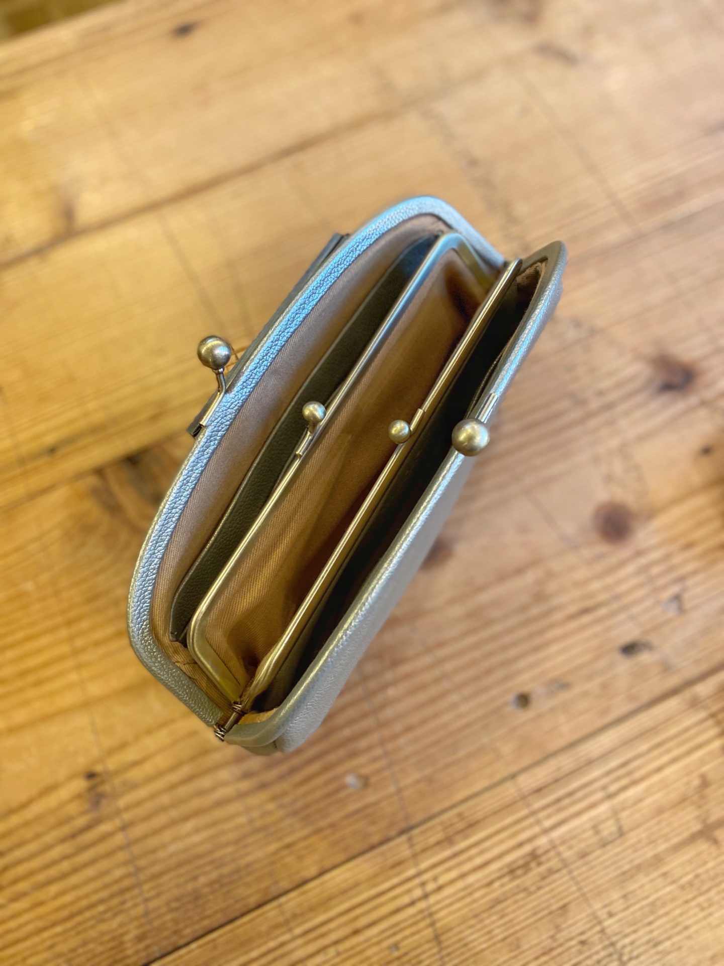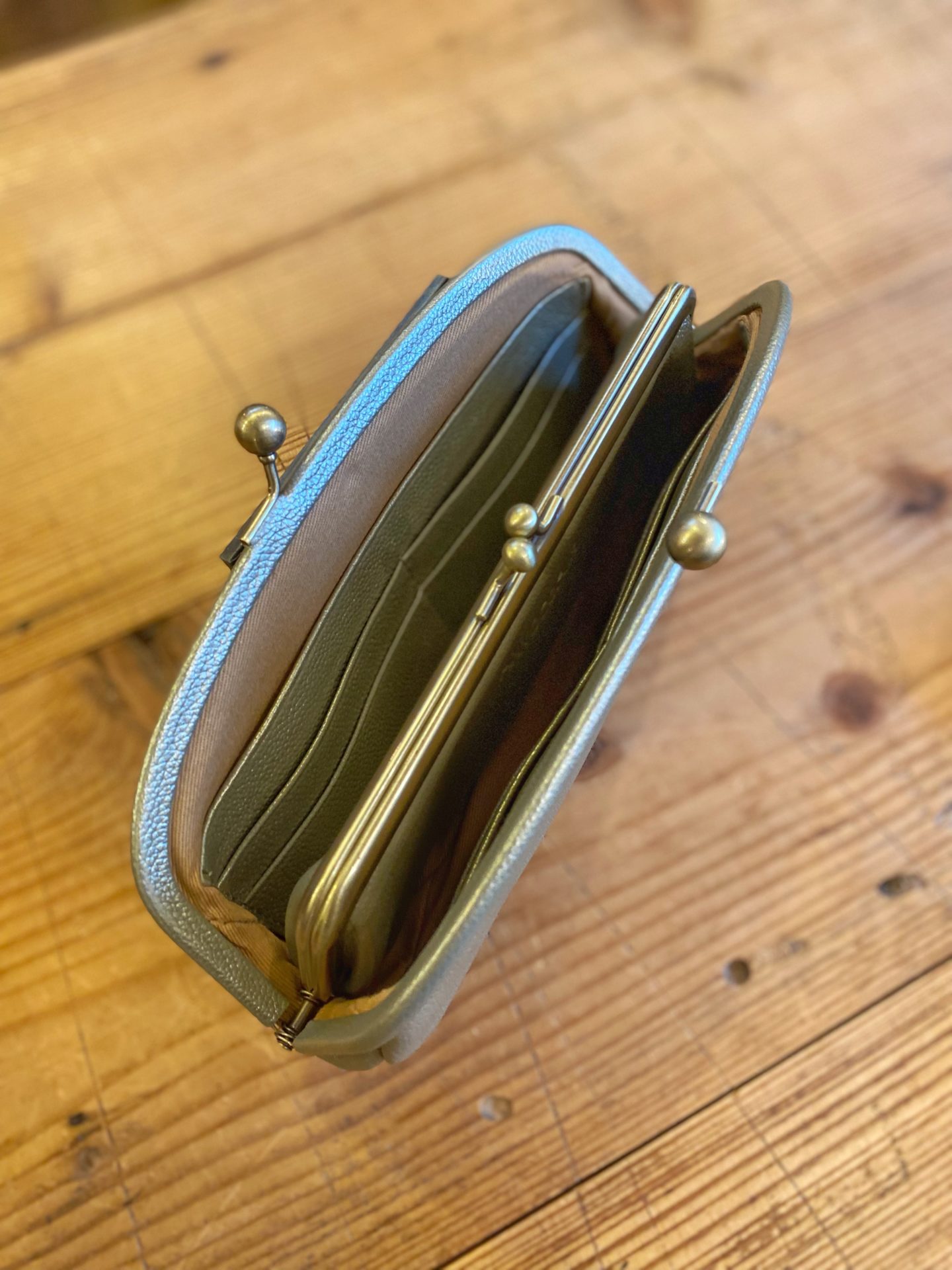 天然の牛革に加工を施したメタリックレザーを使用したお財布です♪