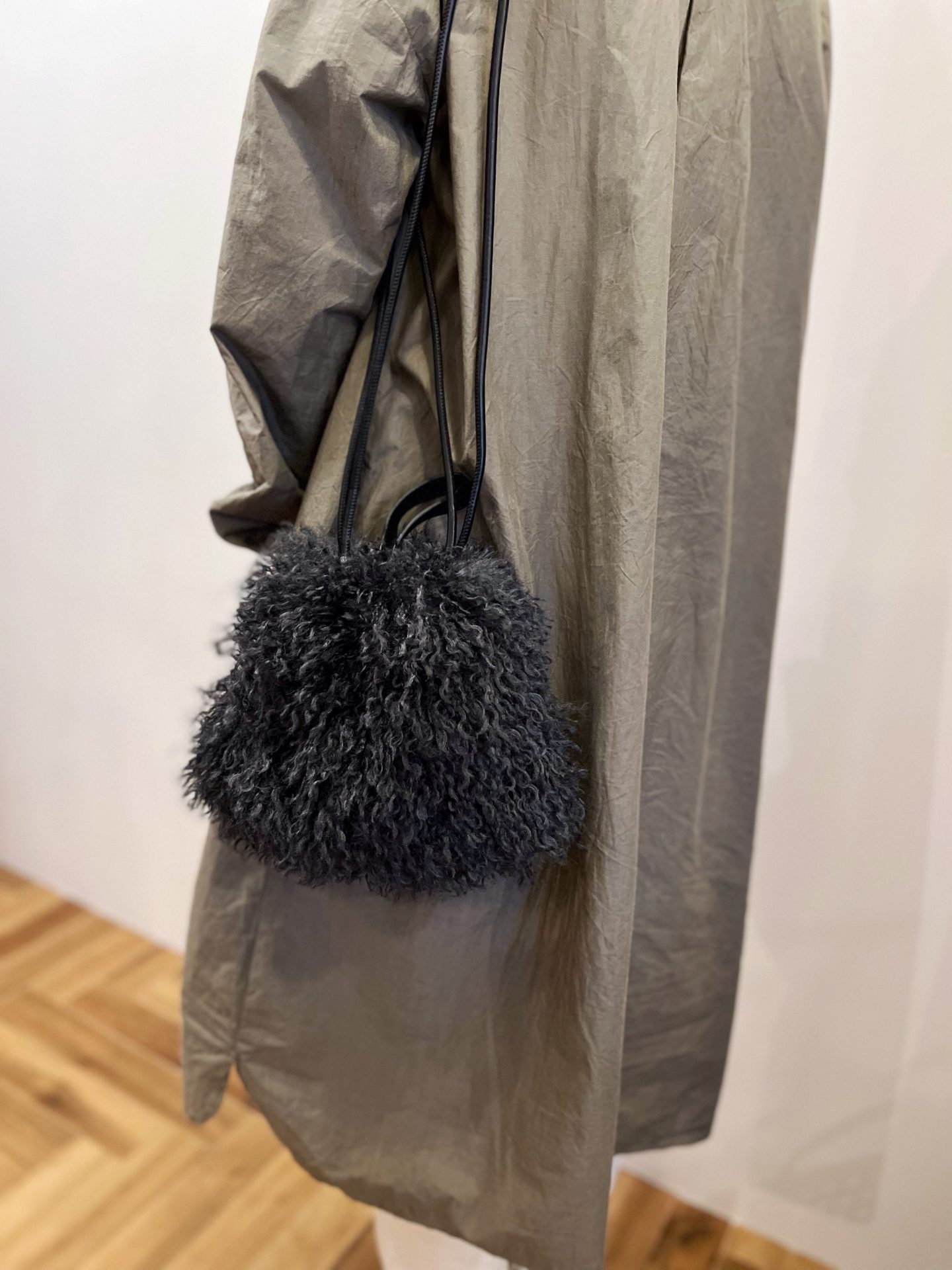 毛足の長いファーの柔らかくボリュームのある素材感のバッグです♪
