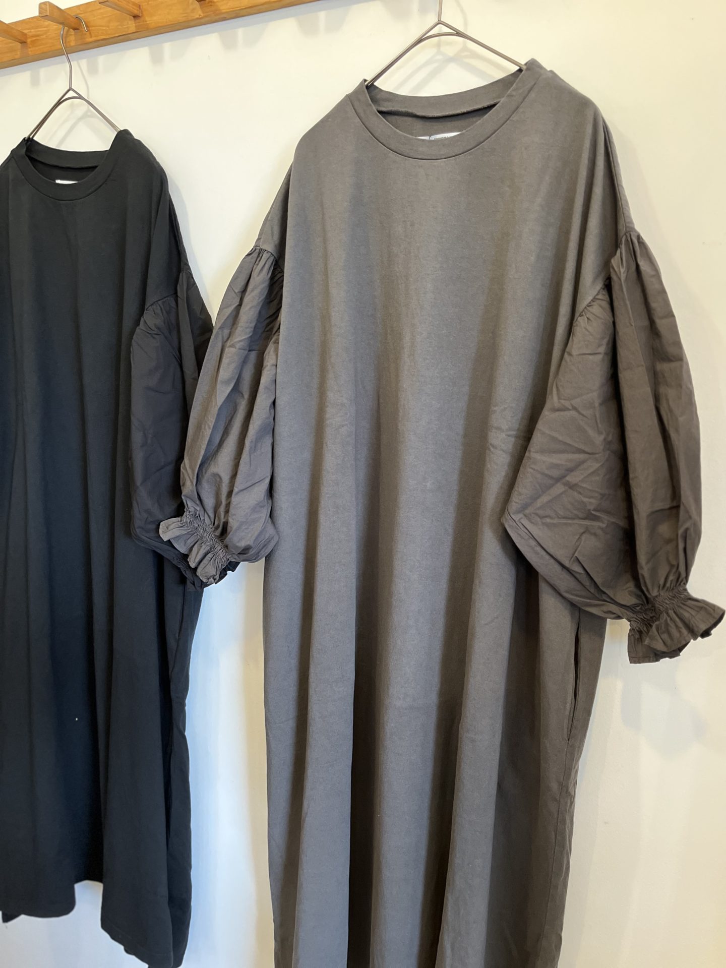 ふんわりとボリューム感のある袖とドロップショルダーのゆったりとしたワンピースです♪