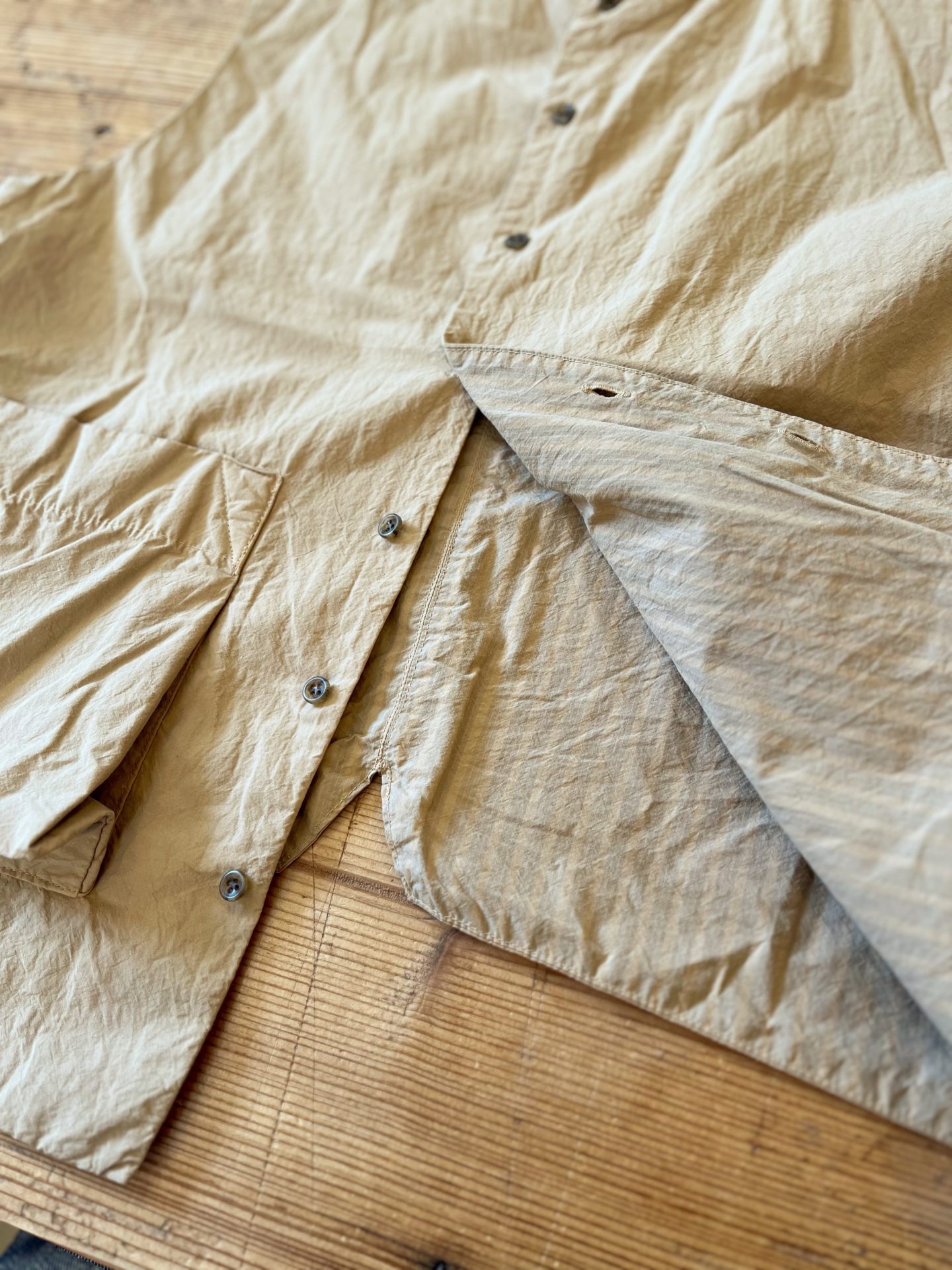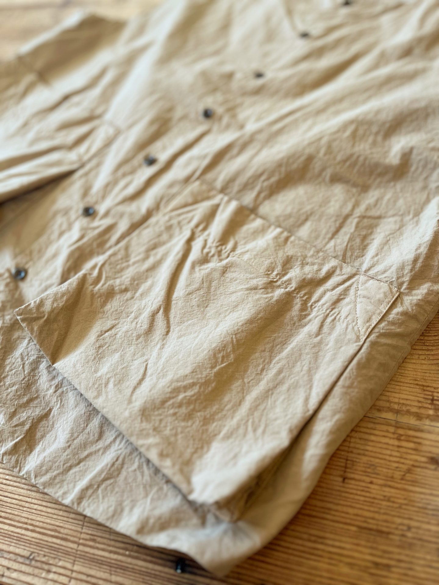 小ぶりな10mm釦、立体感のあるポケットが付いています♪