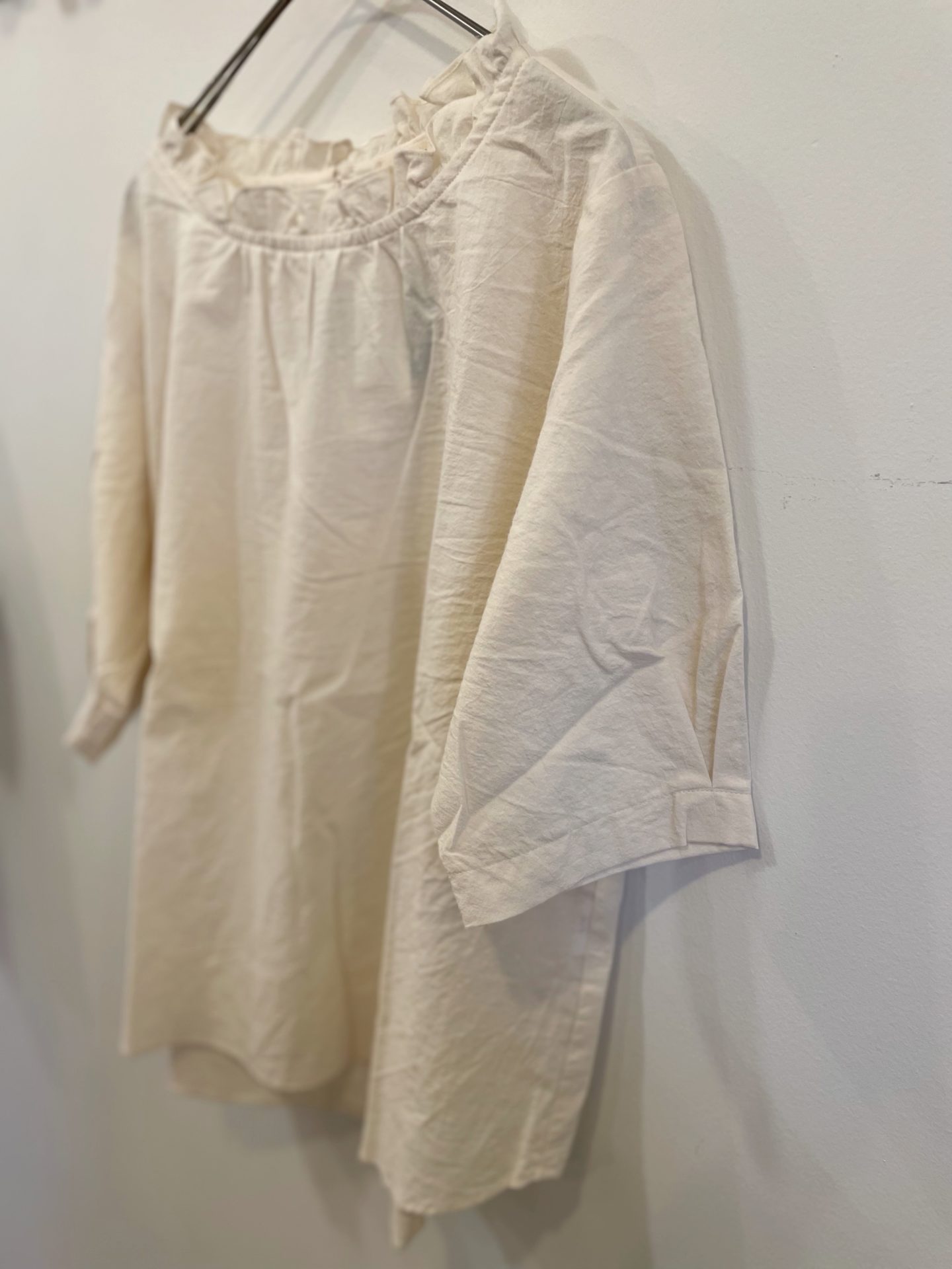 Bico Slone square こちらも東炊き染です。 衿がフリルになっていて、袖は5分袖くらいです♪ 二の腕が隠れます! 綿 100% 9,790yen 2023-07-05 by chabbit slone square < slone square Slone square >