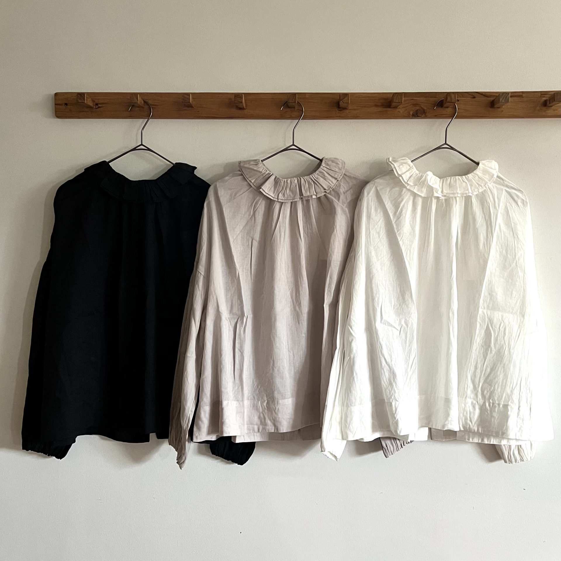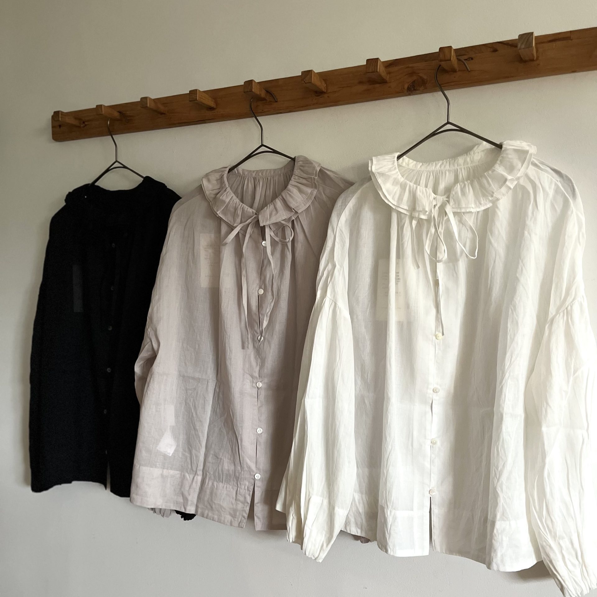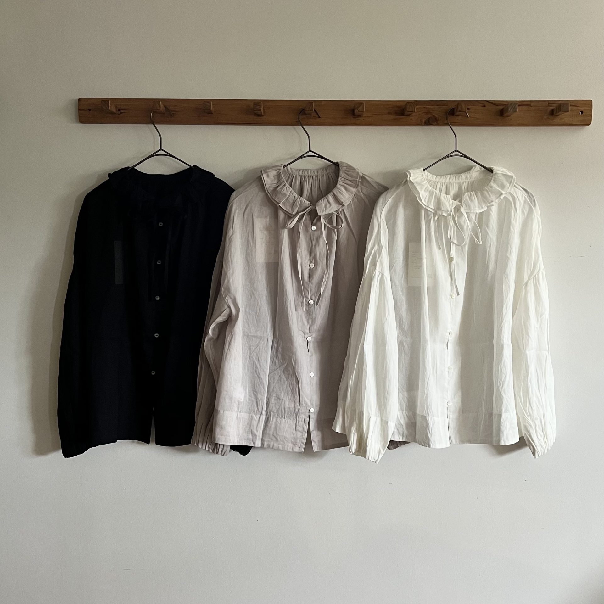長袖ですが薄い生地感で暑い季節にも着ていただけるブラウスです♪