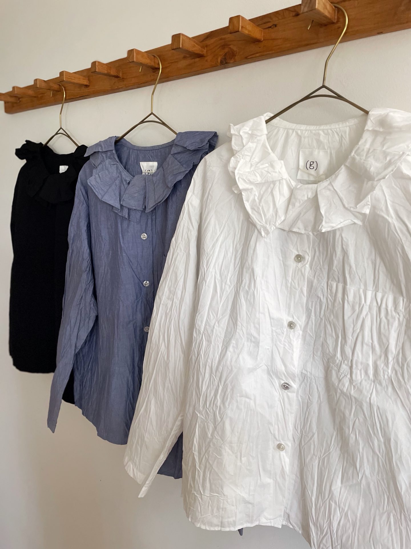 胸元のフリルとナチュラルなシワ感がグラムらしいブラウスです♪