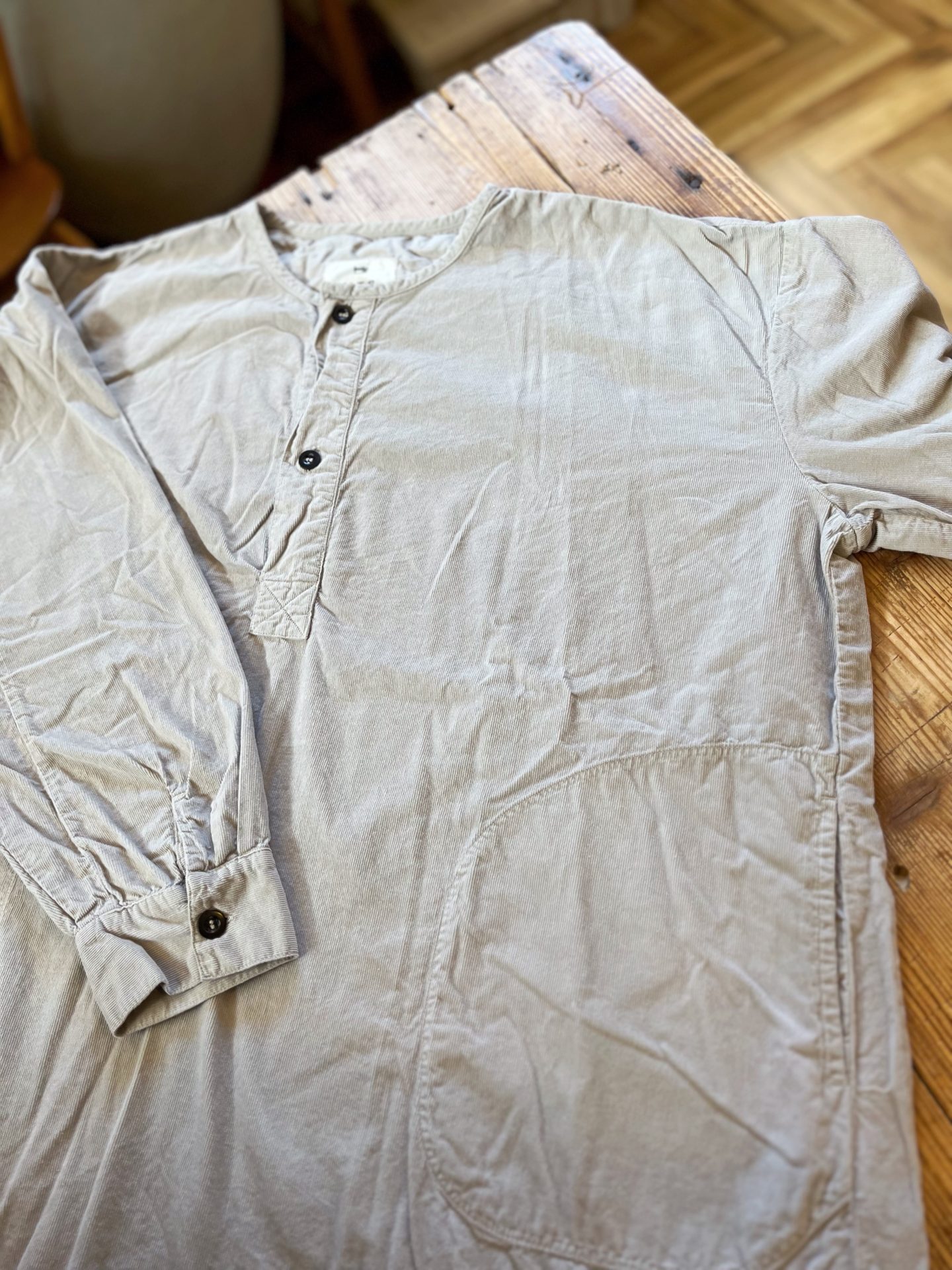 コーデュロイヘンリーネックロングシャツ