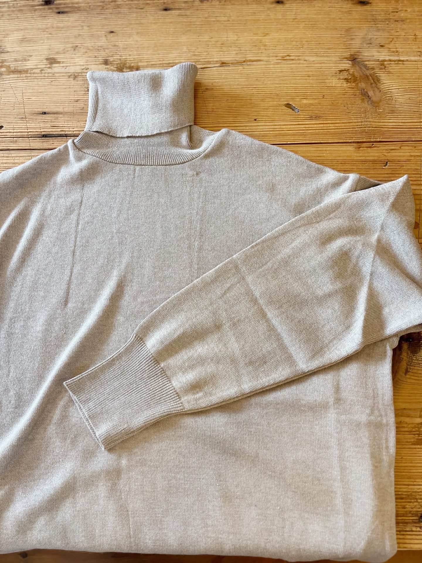 Bico NARU タートル ゆったりとしてとても肌触りの良い生地感のタートル 1枚で可愛く着れそうです! お家で洗えます。 cotton 50% rayon 47% silk 3% 12100yen 2023-08-22 by chabbit NARU < NARU NARU >
