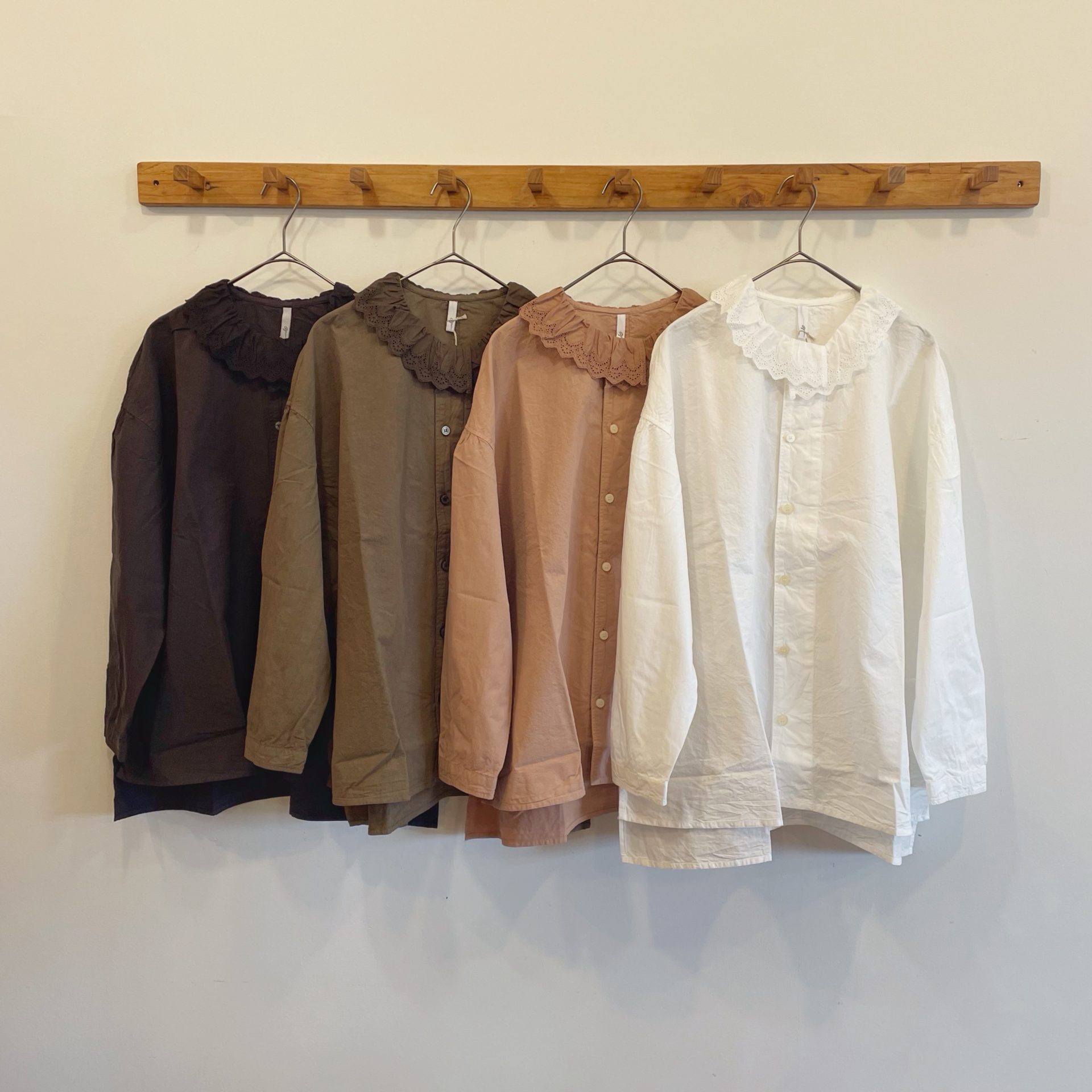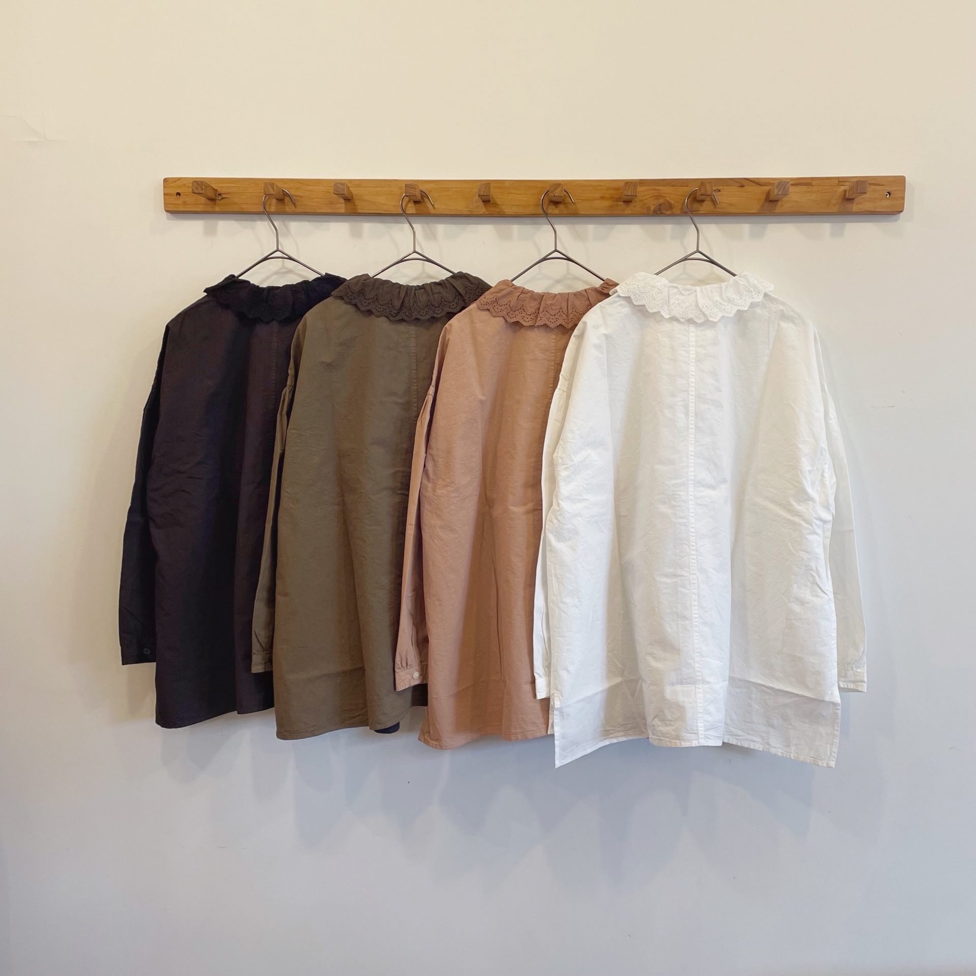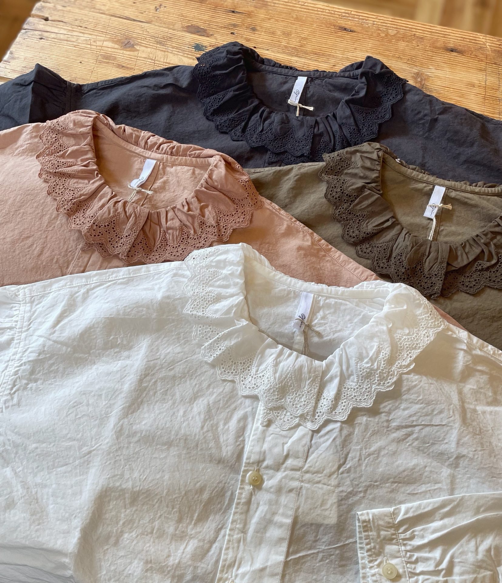 Bico grin ダンプフリルネックシャツ ブラウス 綿88% 麻12% レース 綿100% 15400yen 2023-09-02 by chabbit grin < NATURAL LAUNDRY grin >