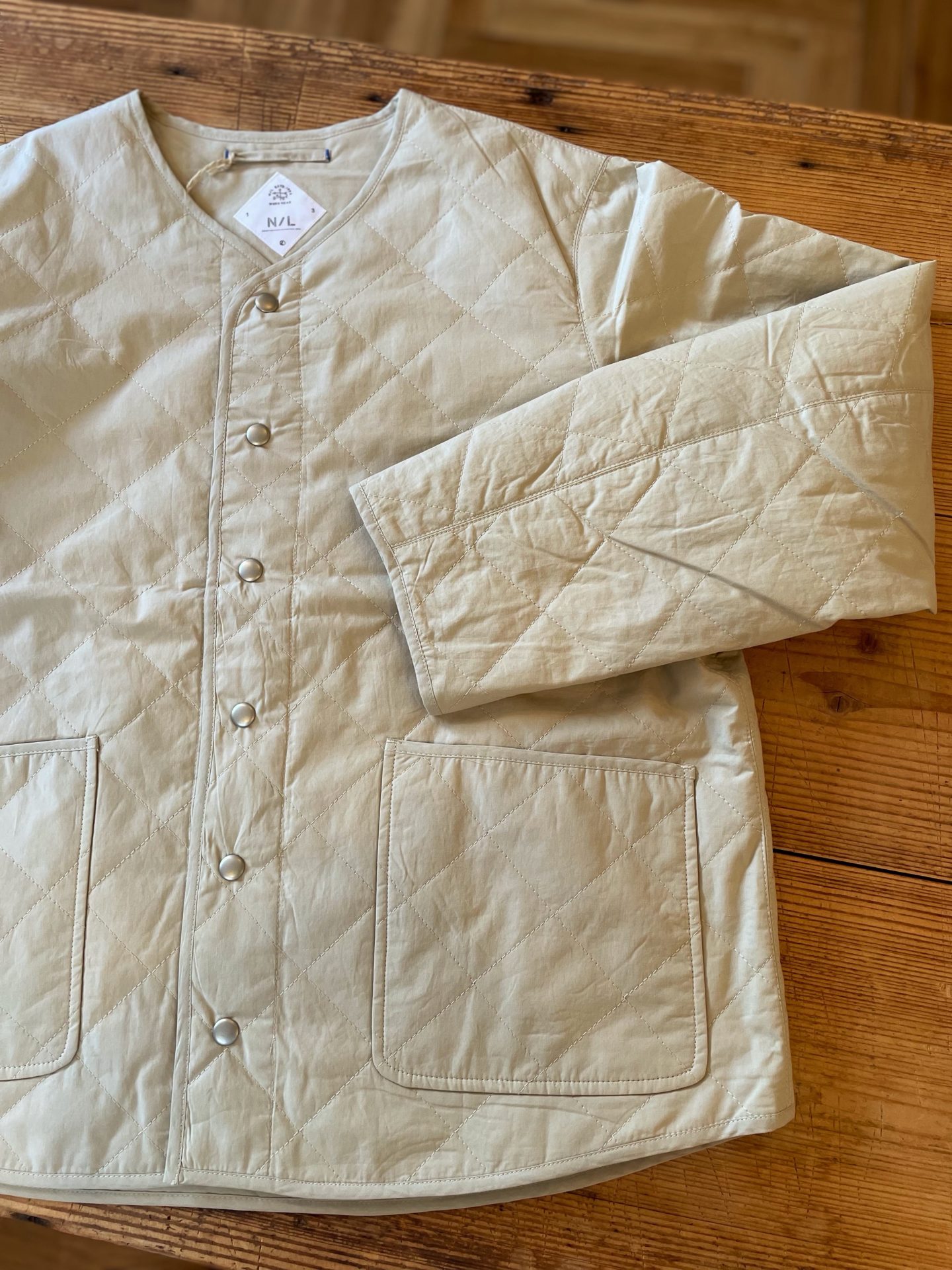 Bico NATURAL LAUNDRY 先染めキルトハイピングジャケット 表地 綿100% 裏地 ポリエステル100% 中綿 ポリエステル100% 22000yen 2023-09-07 by chabbit NATURAL LAUNDRY < moonSTAR LABORATORY >