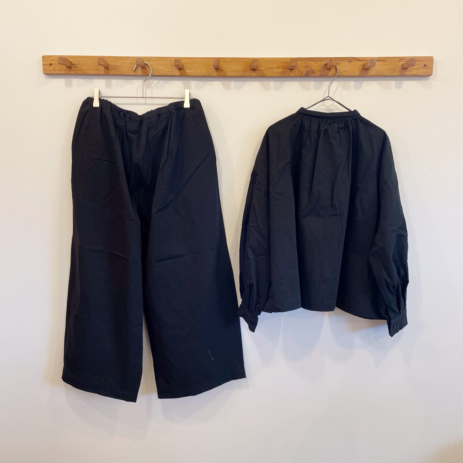 パンツは、ウエスト周りにたっぷりとタックを取ることで程よくボリュームのあるシルエットになっています☆総ゴム仕様でリラックス感ある穿き心地です♪