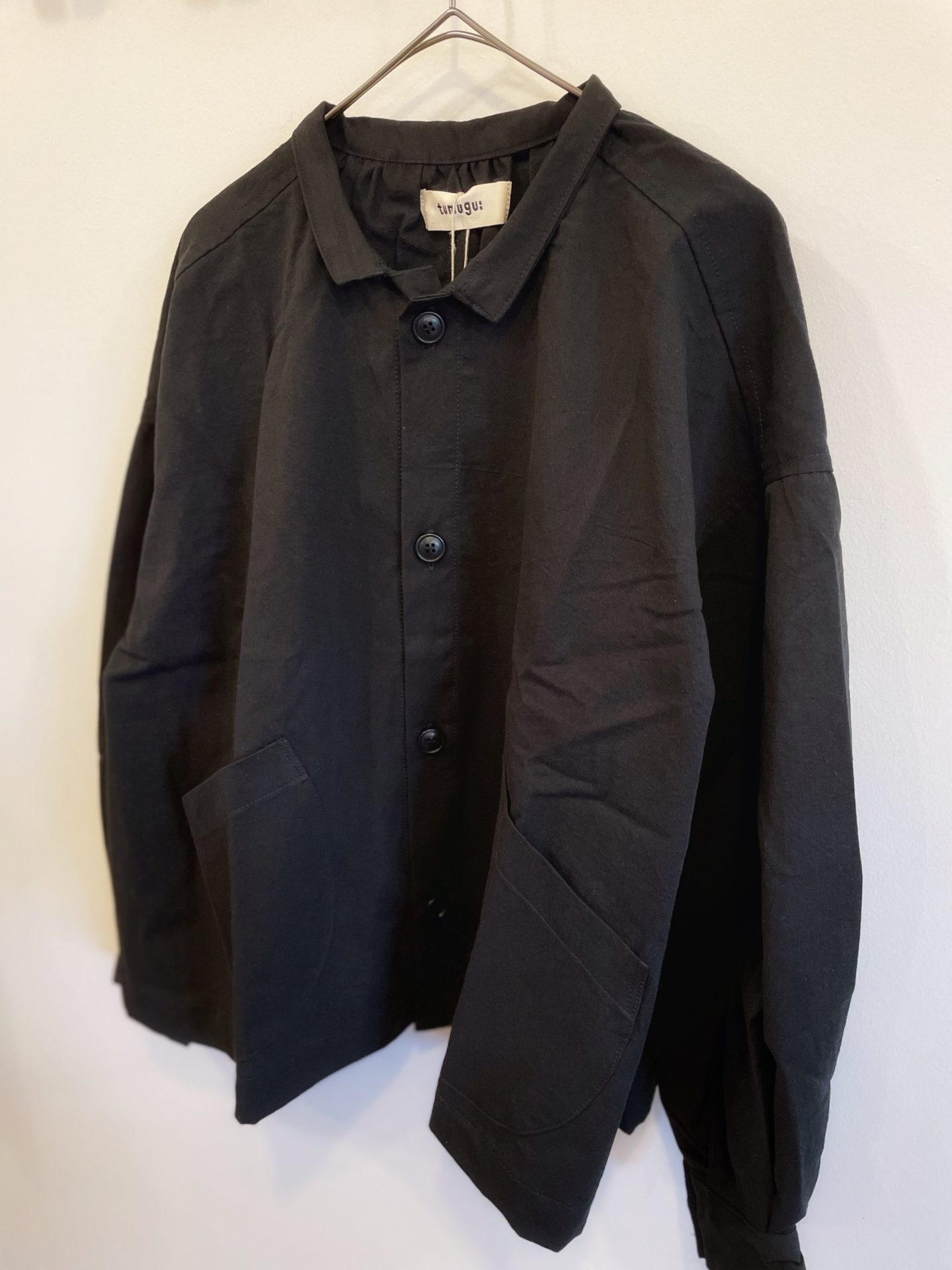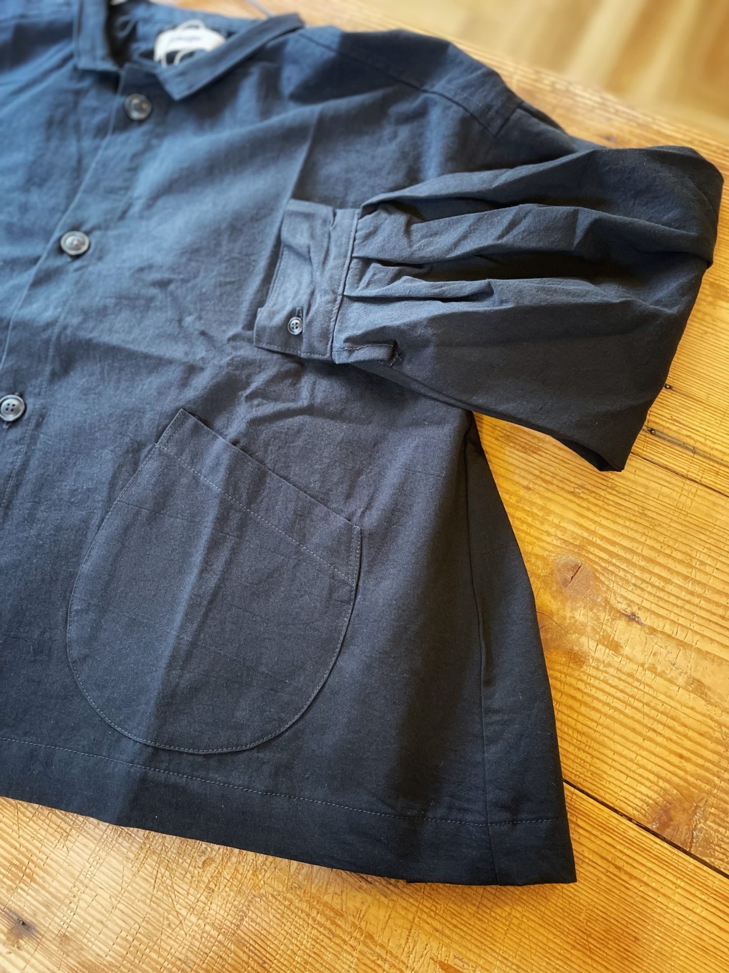 シャツよりも厚く、ジャケットより薄い生地感で、手作業で染色している為、ムラ感としわ感のあるアンティークな風合いの生地です♪