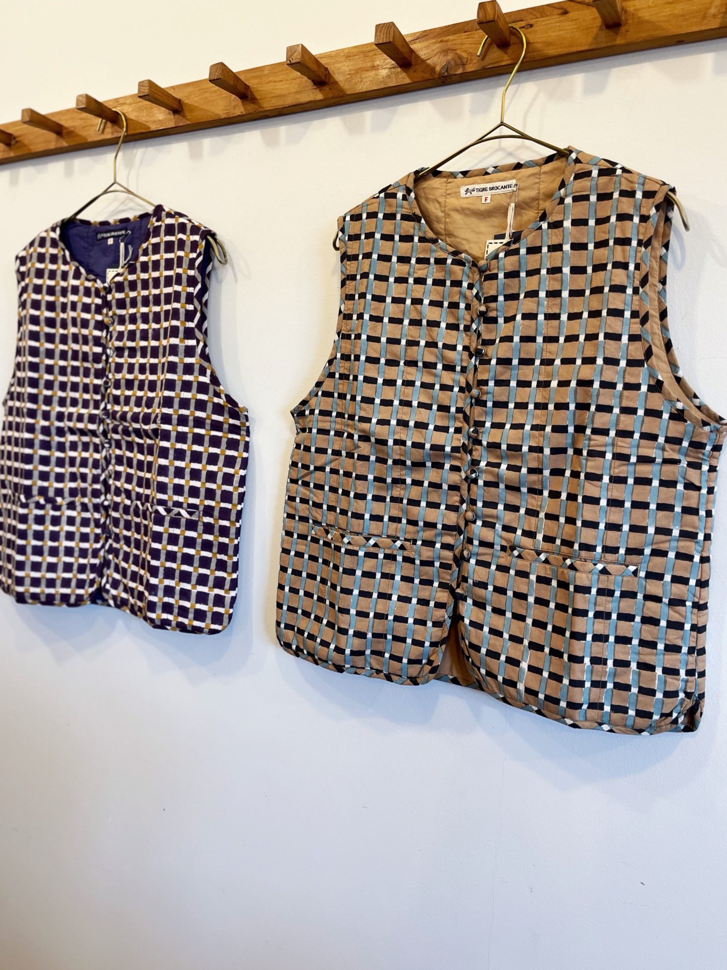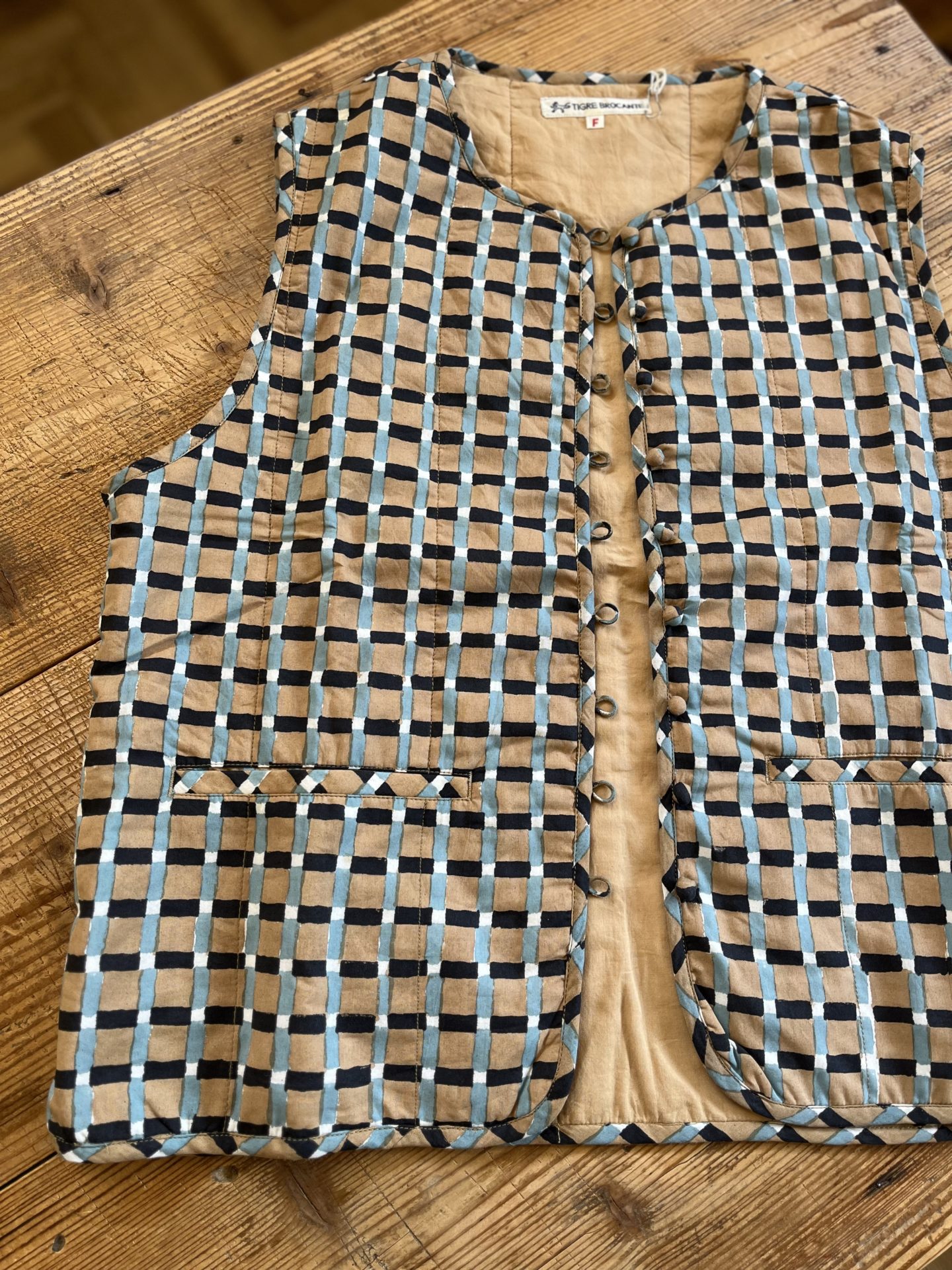 木製の型を手で押し当てながら色柄を重ねていく、インドの伝統的なブロックプリントで作られたベストが入荷です♪