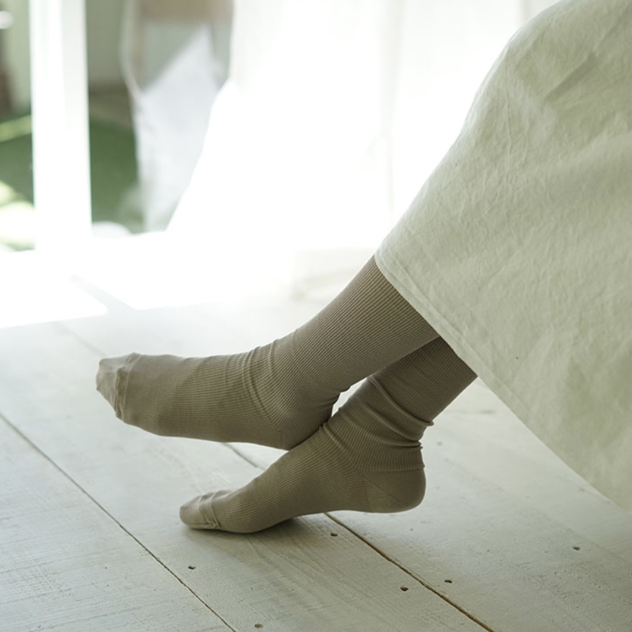 Bico hakne シルクリブハイソックス 使用を繰り返しても品質を維持する上質なウォッシャブルシルクを 使用したハイソックスです♪ シルク 70% ナイロン 30% 3080yen 2023-11-13 by chabbit hakne < memeri hakne >