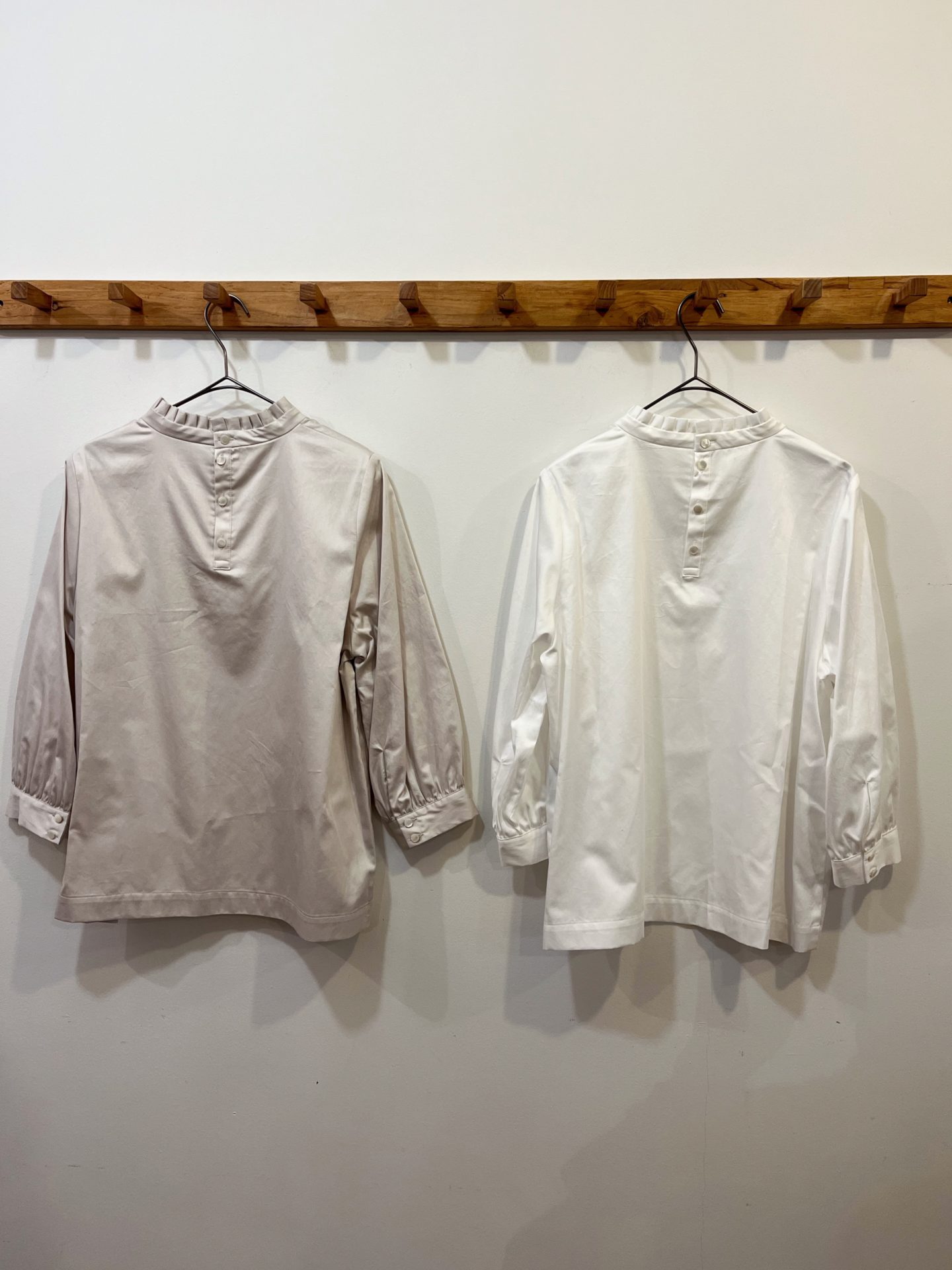 Bico Utilite スタンドフリルカラーブラウス シルクのように柔らかなソフトサテンのブラウス フォーマルにもお使いいただけます♪ 着丈 58センチ 16500yen 2023-12-25 by chabbit utilite < STAMP and Diary Utilite >