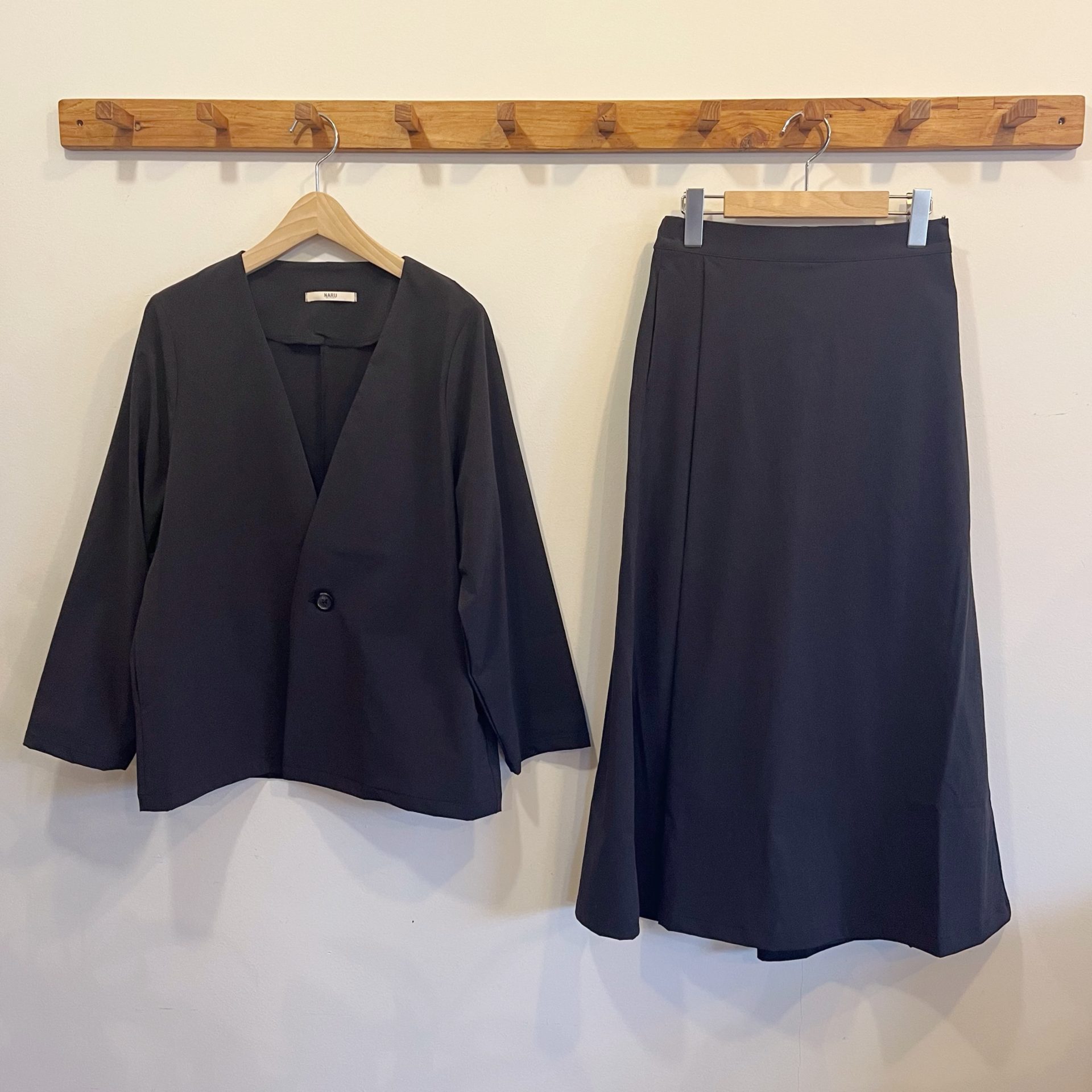 Bico NARU ジャケット スカート セットアップ シャリっとした生地感のジャケットとスカートのセットアップ! とても軽くて着やすいですよ! ナイロン85% ポリウレタン15% ジャケット…14,300yen スカート…15,180yen 2024-01-18 by chabbit NARU < NARU NARU >