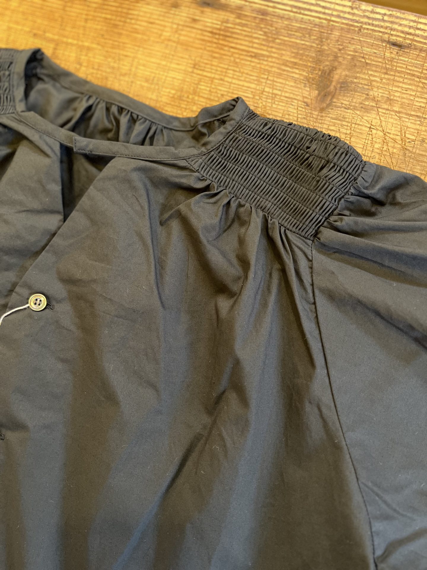 Bico UNIVERSAL TISSU ナチュラルタイプライターシャーリングワンピース 一番上のみスナップボタン開き、両脇スラッシュポケット、前後のヨーク下からギャザー、ヨークと袖口シャーリング、裾はラウンドカットのワンピースです♪ コットン100% 着丈…114センチ 19,800yen 2024-01-22 by chabbit UNIVERSAL TISSU < UNIVERSAL TISSU grin >
