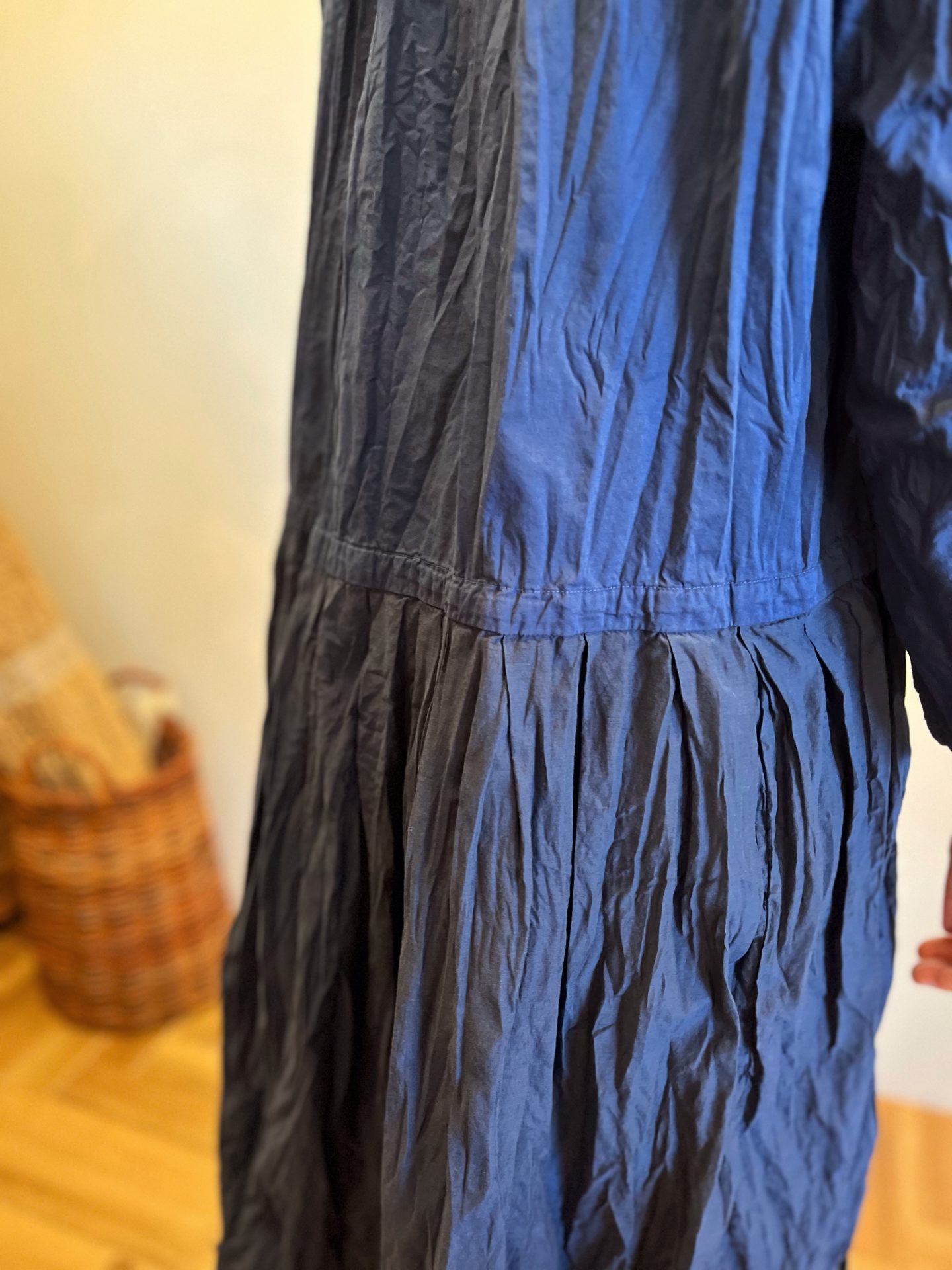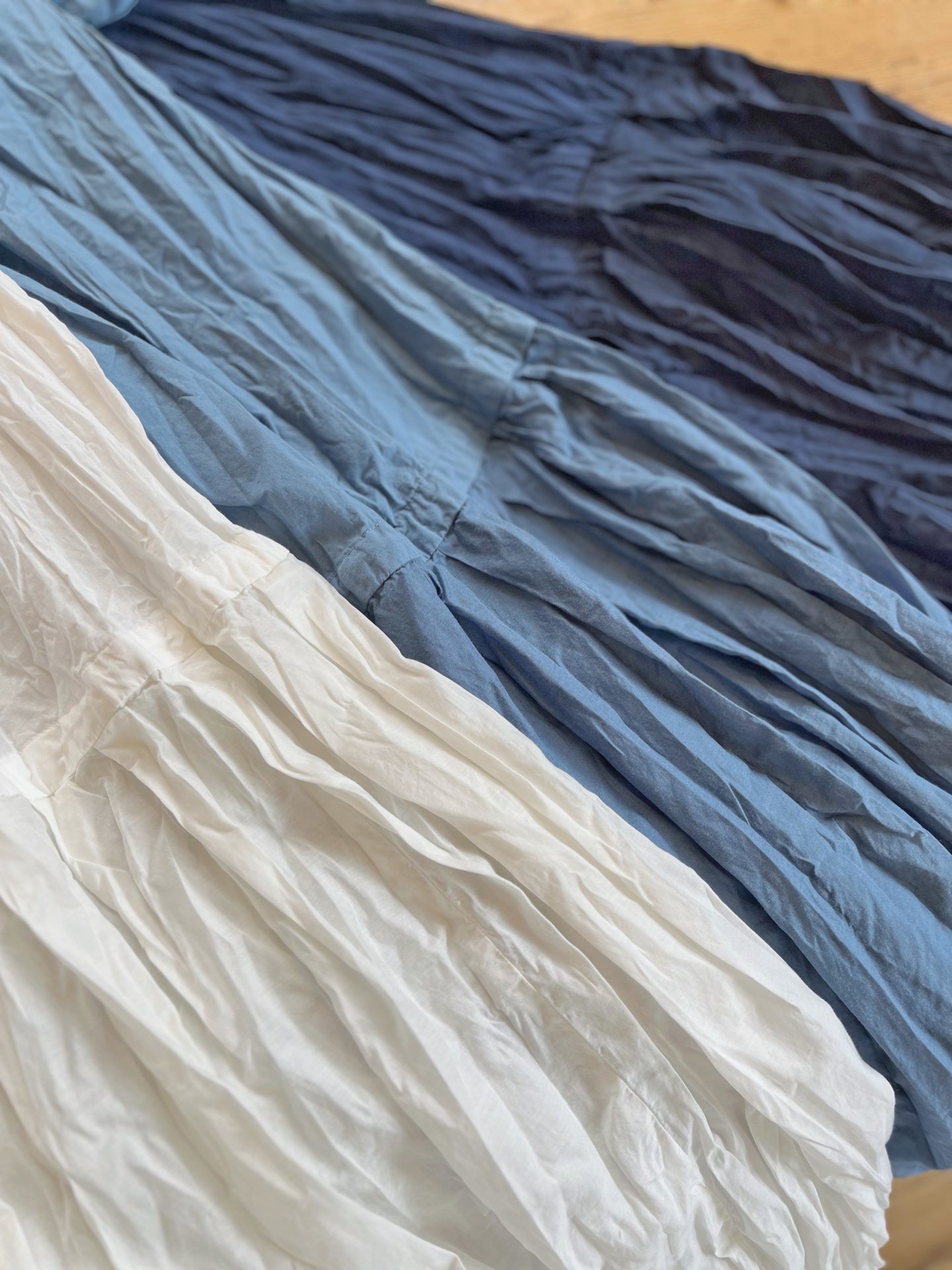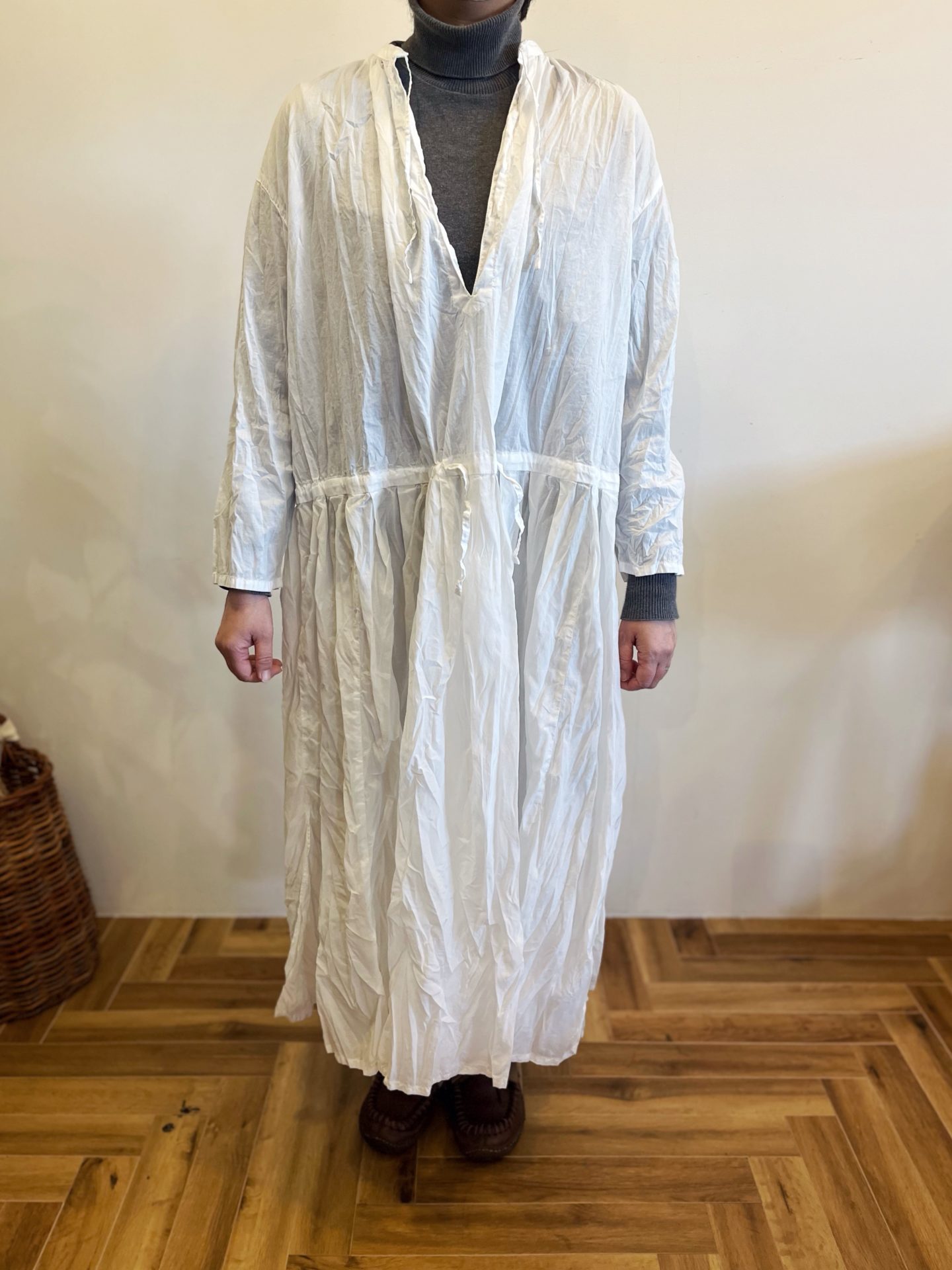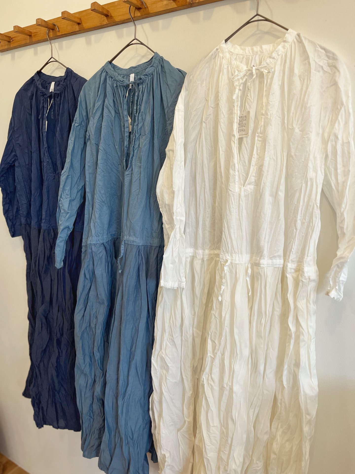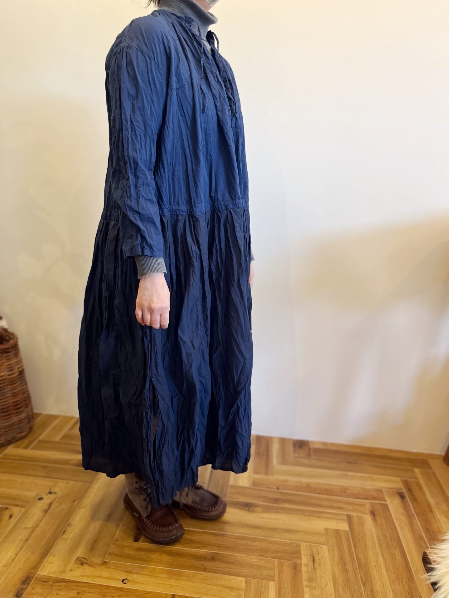 シワ仕上げをしてますので、お洗濯の際、脱水時にしぼりジワをつけて陰干ししてくださいね☆
