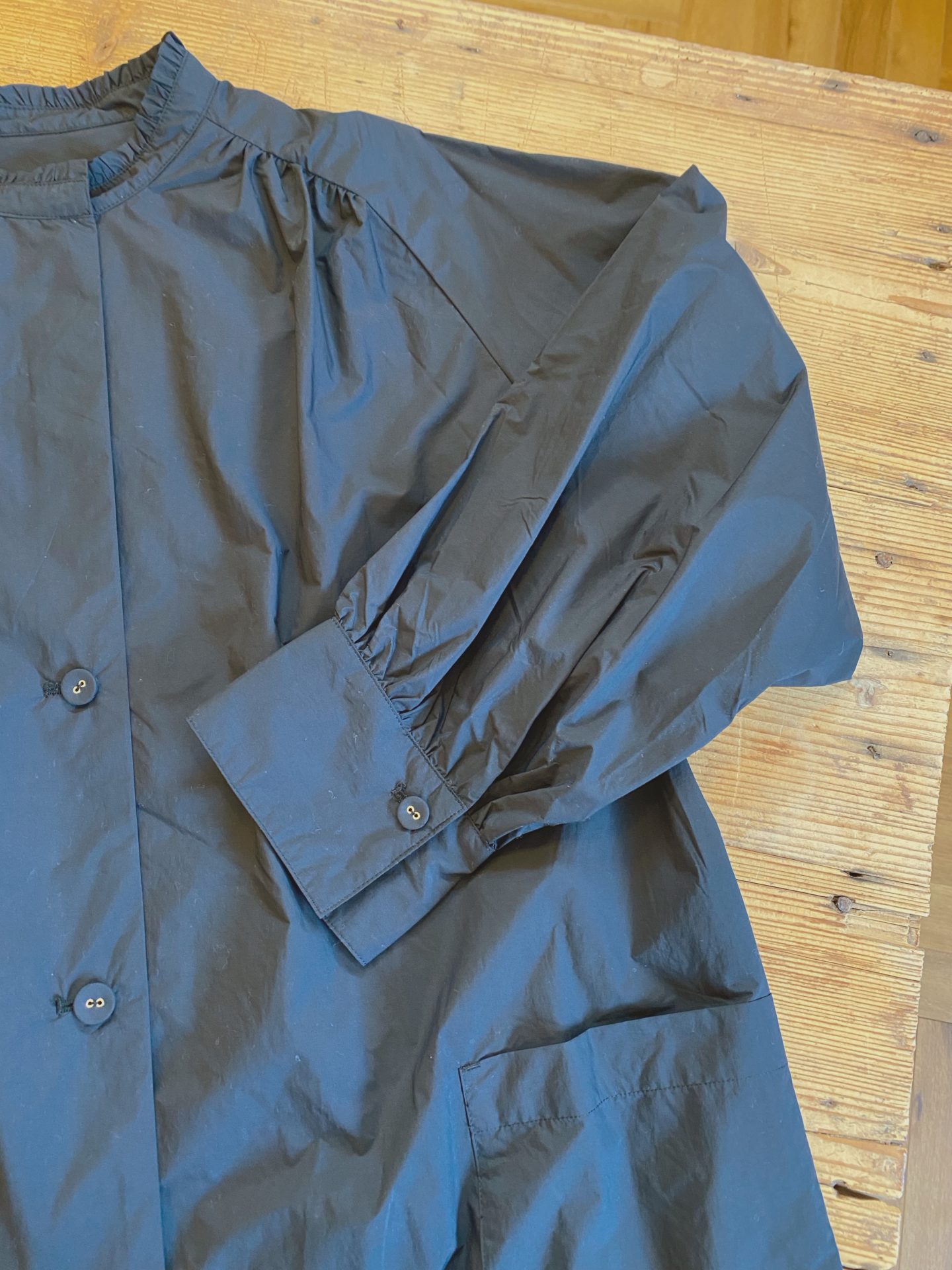 Bico Porter des boutons プチフリルギャザーコート ナイロン生地で、シャリっとした着心地です♪ 前全開開きで、ボタンを外して着てもカッコいいですよ☆ ナイロン 100% 着丈 118cm 40,700yen 2024-01-25 by chabbit porter des boutons < Porter des boutons Gauze >