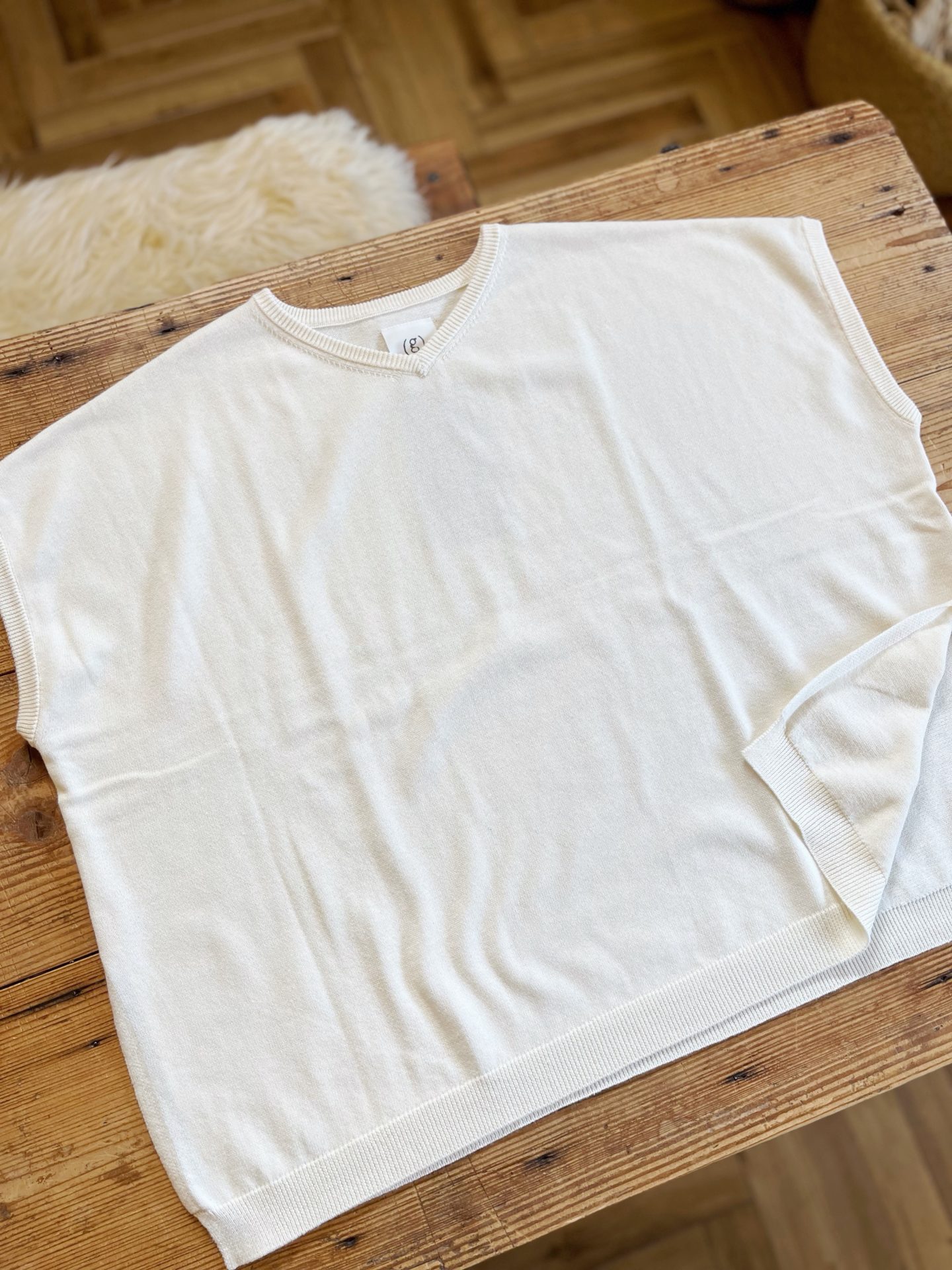 vネックで身幅のある柔らかいニットベストです♪