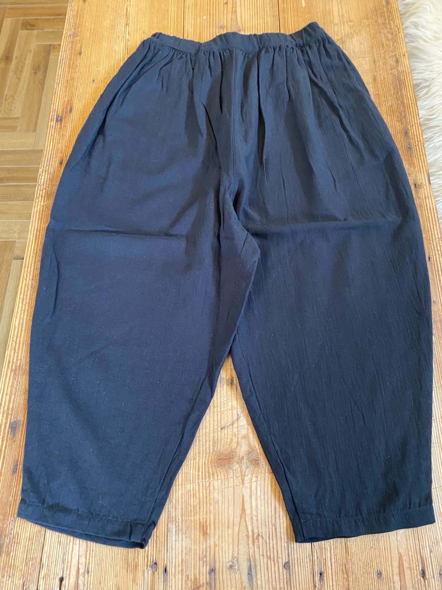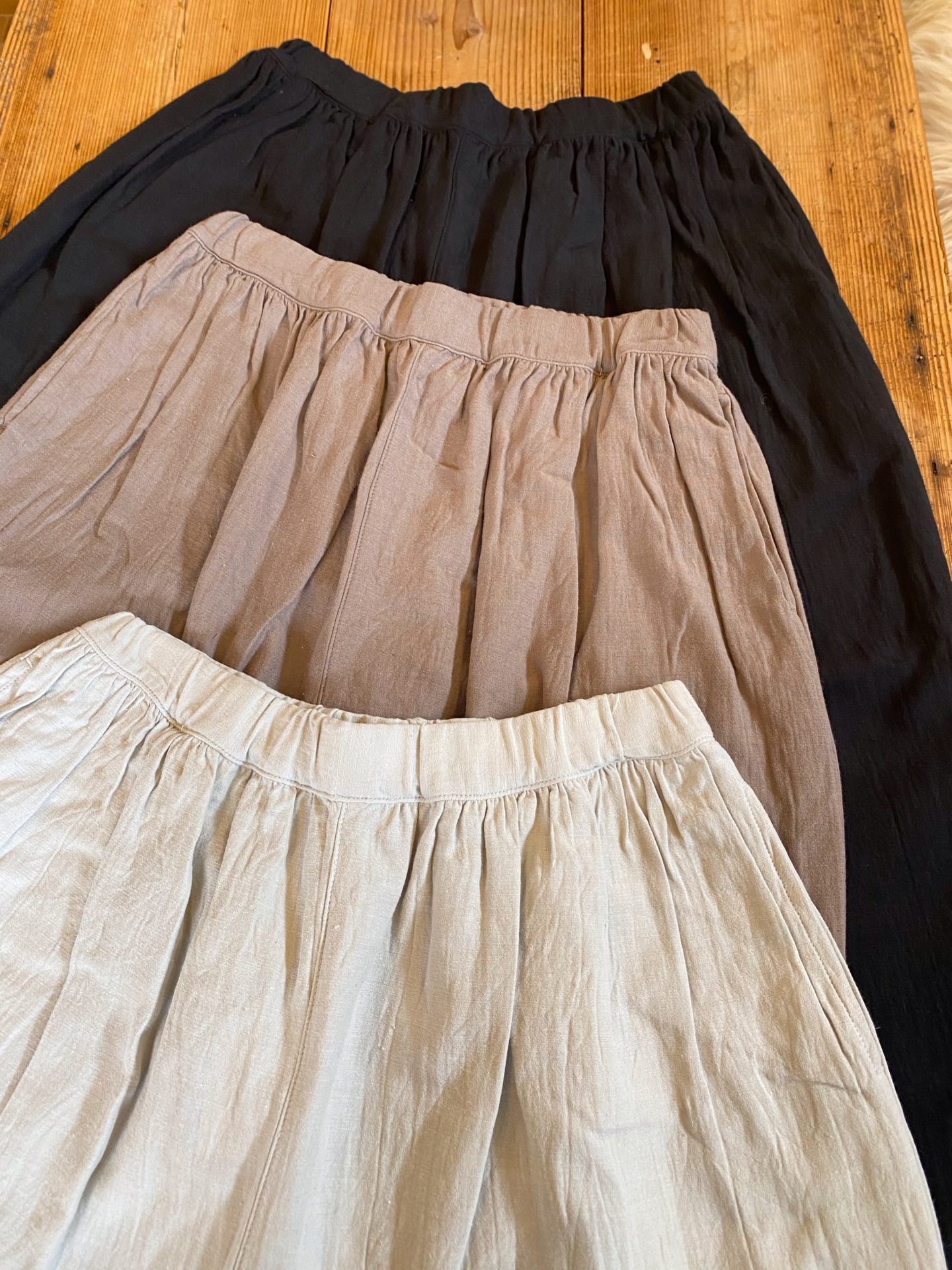 軽くて柔らかい綿麻バックサテンの生地のパンツです♪生地の肌に触れる面は綿糸を使用しているので、チクチクせずに着られます!