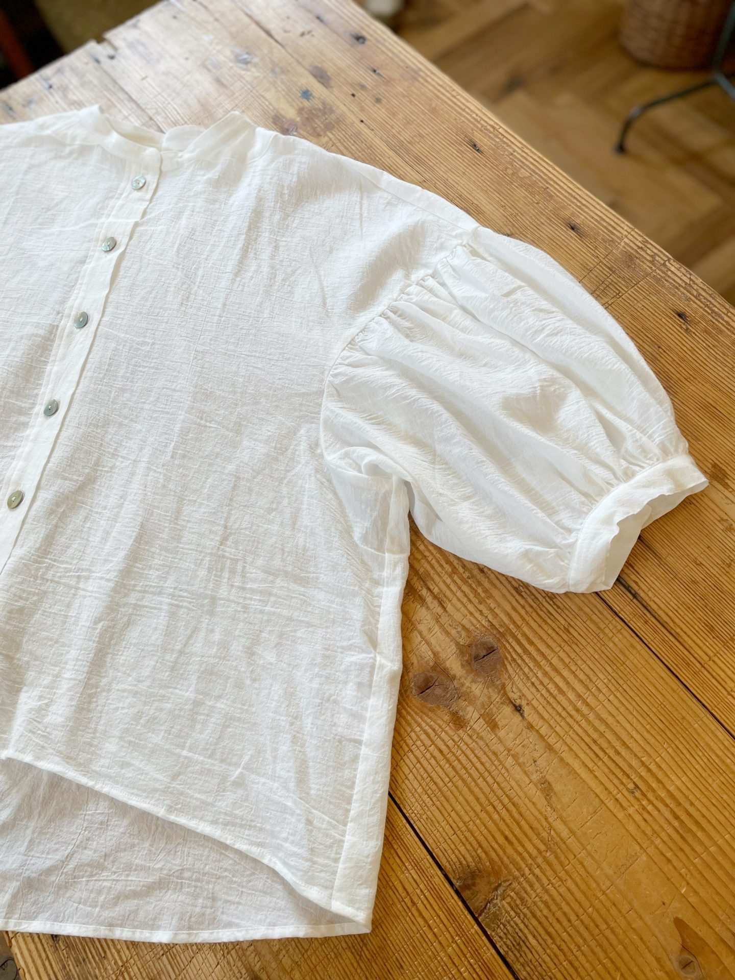 パフ袖が可愛いブラウスです♪軽くて薄い生地なので 真夏でも使えますよ〜!