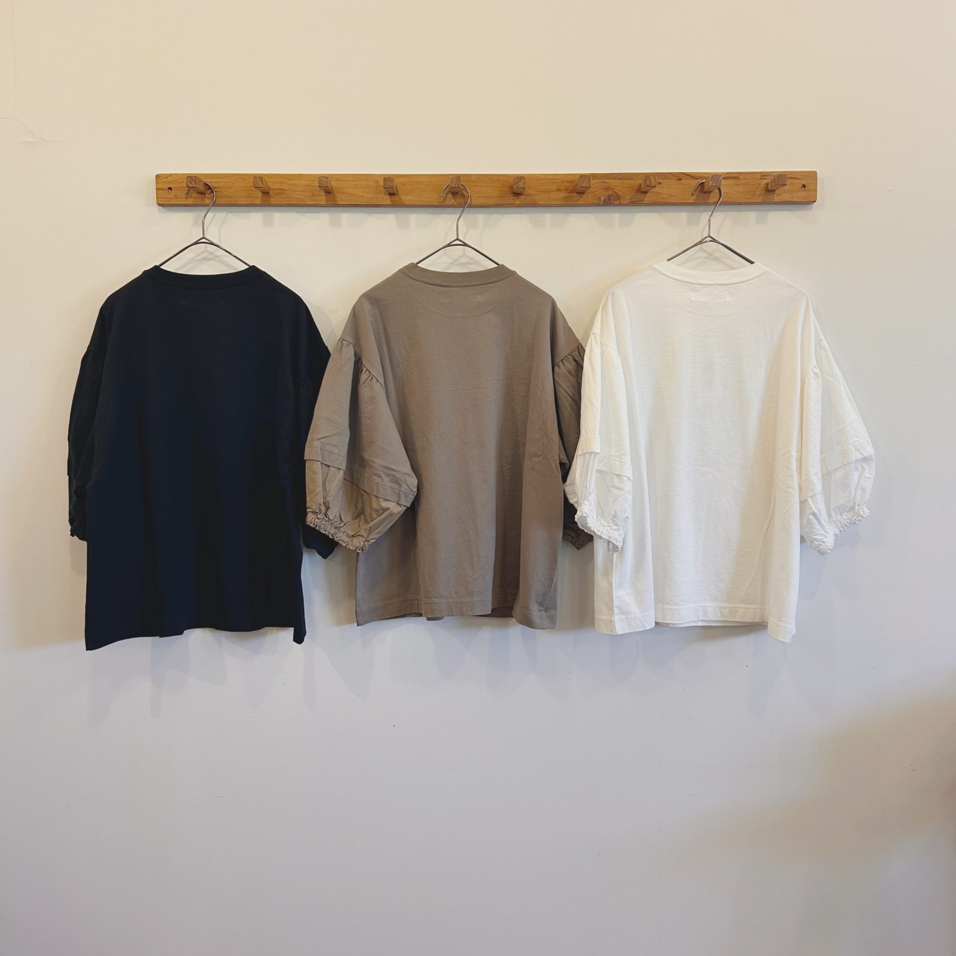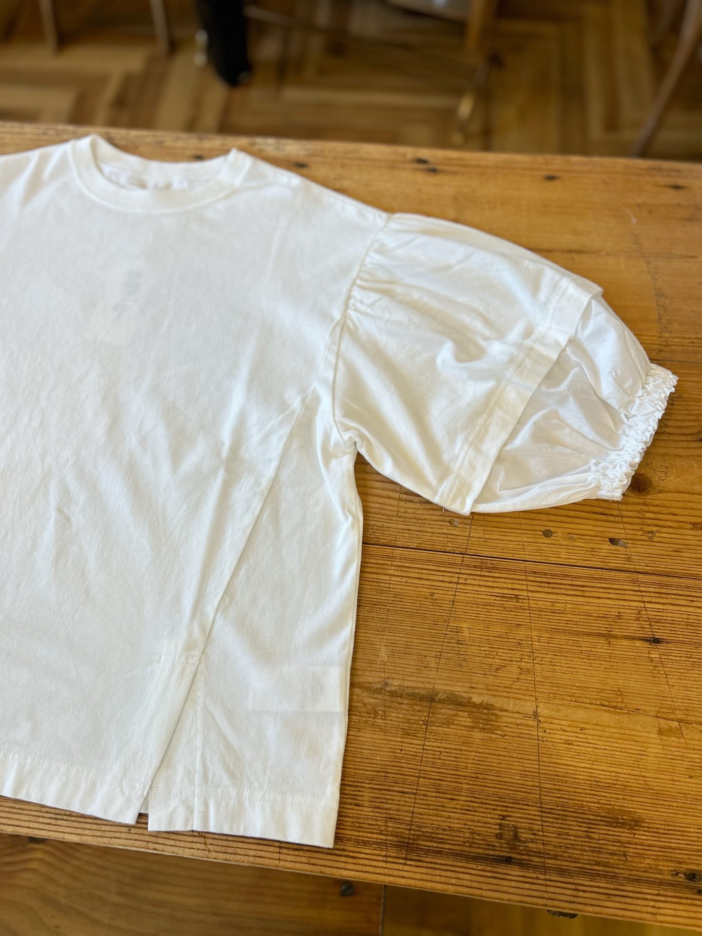 Bico UNIVERSAL SEVEN クラシック天竺 ランタンスリーブTシャツ ベーシックな中肉カットソーの身頃に、一部タイプライターを使用したランタンスリーブがポイントのTシャツです♪ コットン100% 9,900yen 2024-04-25 by chabbit UNIVERSAL SEVEN < ina UNIVERSAL SEVEN >
