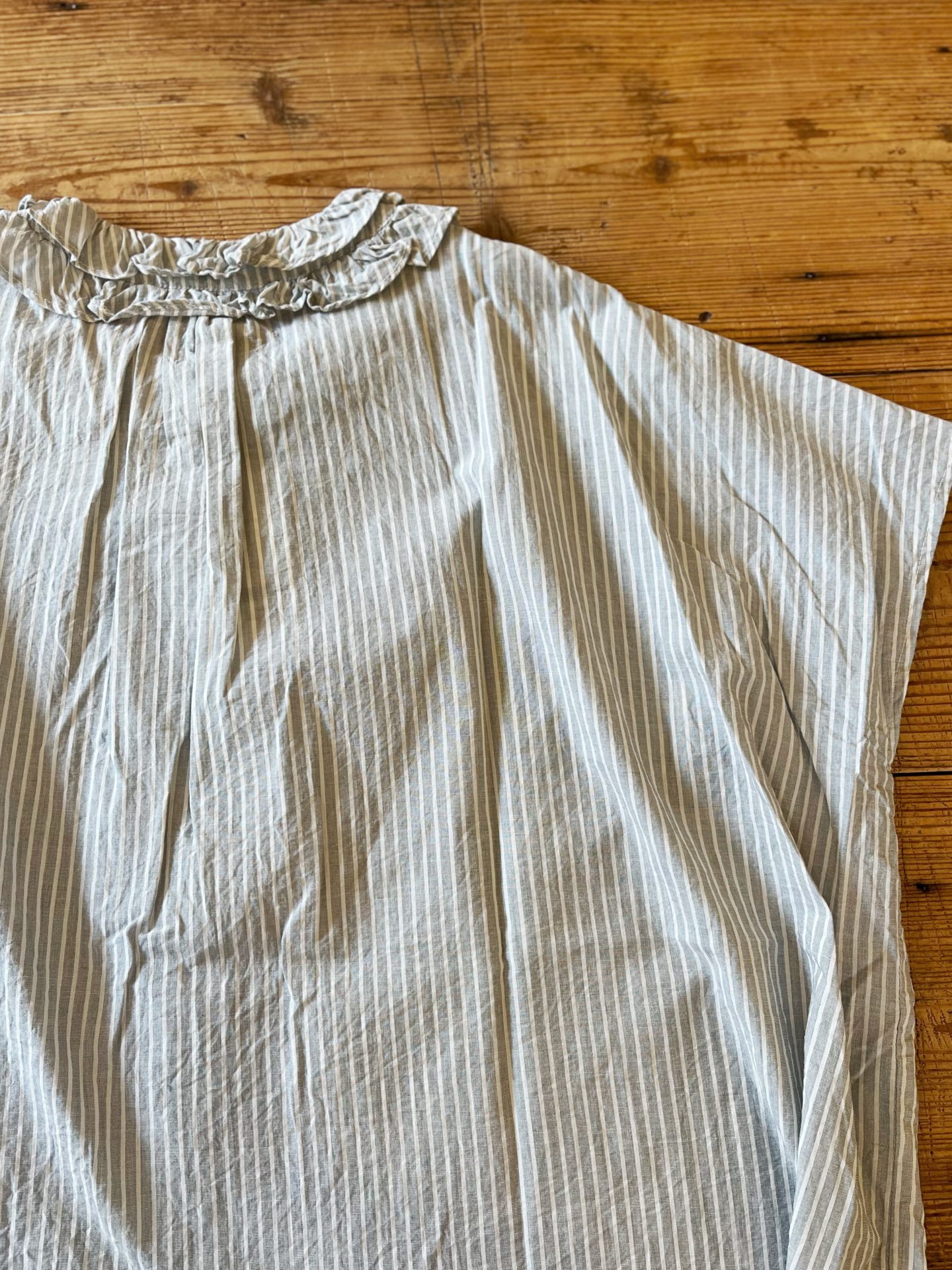 Bico NOUVELLES DU PARADIS フリル衿ブラウス さりげないフリルの衿がポイントです♪ コットン55% リネン45% ストライプ…コットン100% 着丈 60cm 16,280yen 2024-04-30 by chabbit NOUVELLES DU PARADIS < NOUVELLES DU PARADIS NOUVELLES DU PARADIS >