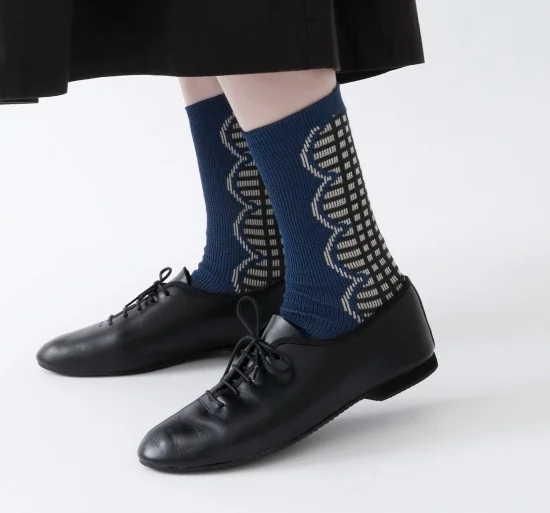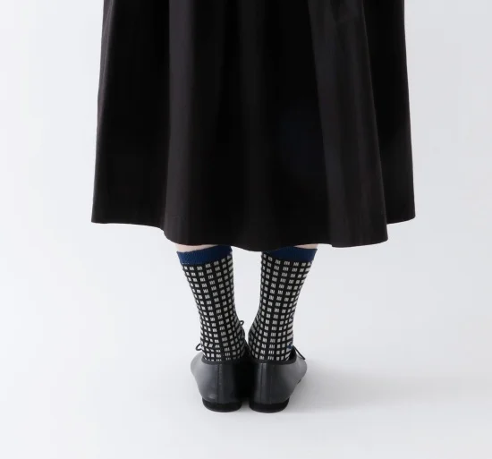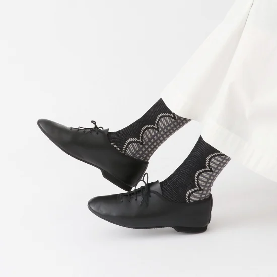 後ろ側に配置したチェック柄がポイントのソックスです!レースのような柄が女性らしく、バックスタイルを楽しめる1足ですよ♪
