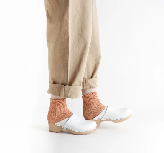 リネン糸をざっくりと編み立てた、透け感のある程よい厚みのソックスです。くるぶしが隠れる短めの丈です。リネンのシャリ感が気持ちよく、夏に活躍する1足です。