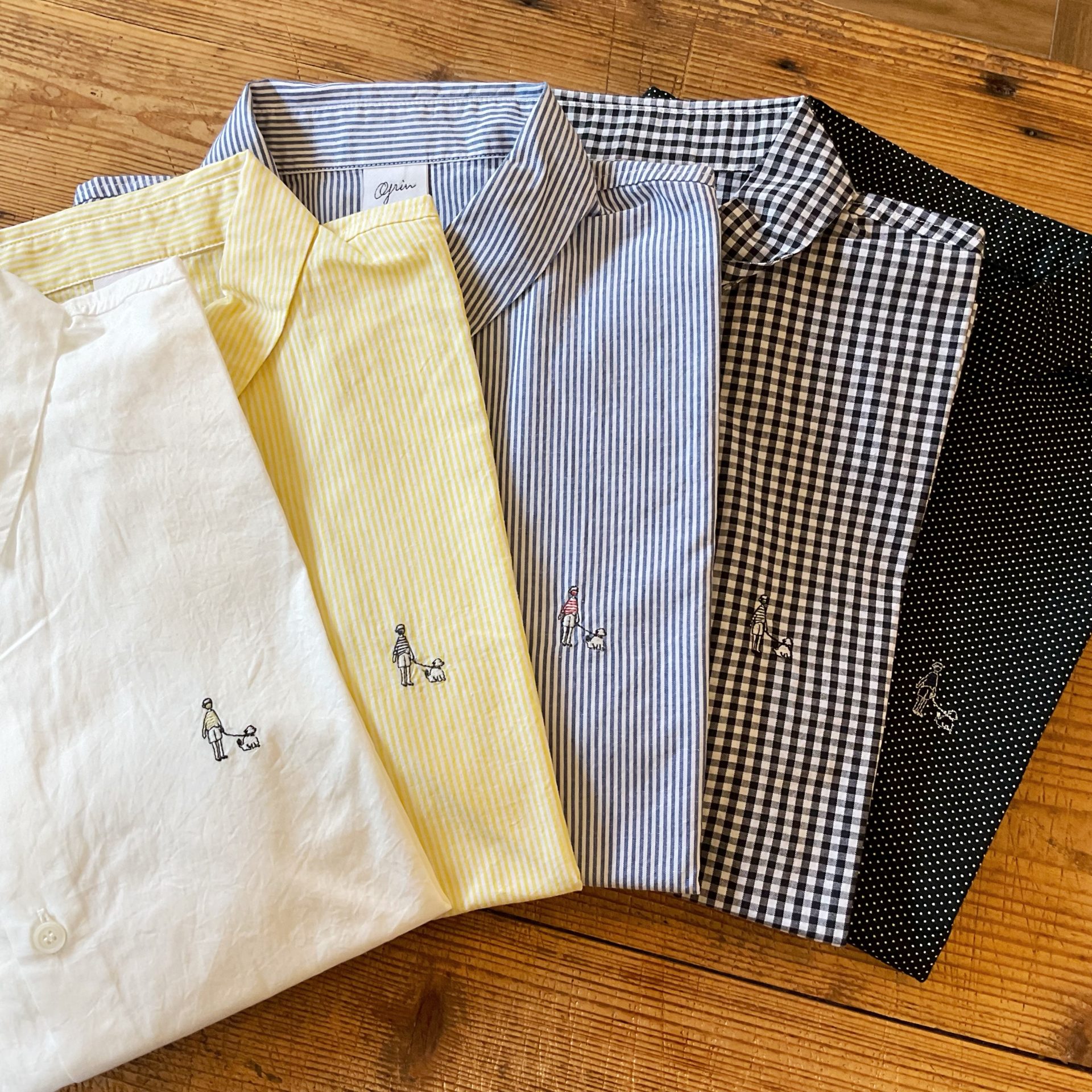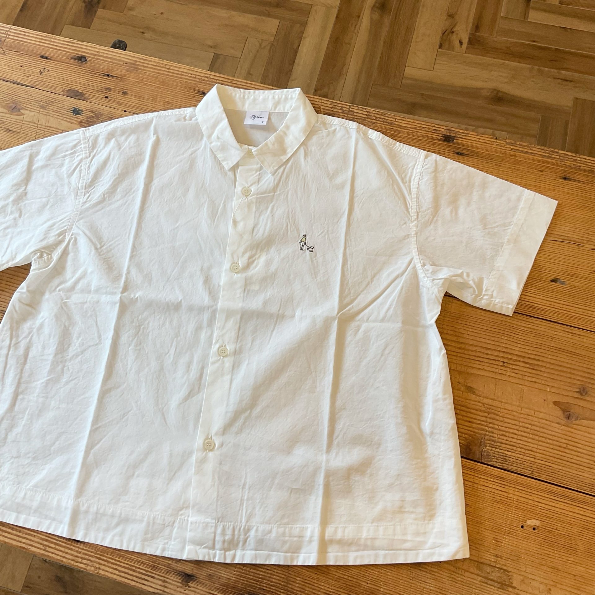 Bico grin ブロードお散歩刺繍シャツ 定番で人気の形のシャツが届きました。 今回はワンちゃんのお散歩刺繍が可愛いです。 コットン 100% 10450yen 両サイドにスリットが入っています。 2024-05-27 by chabbit grin < UNIVERSAL TISSU grin >