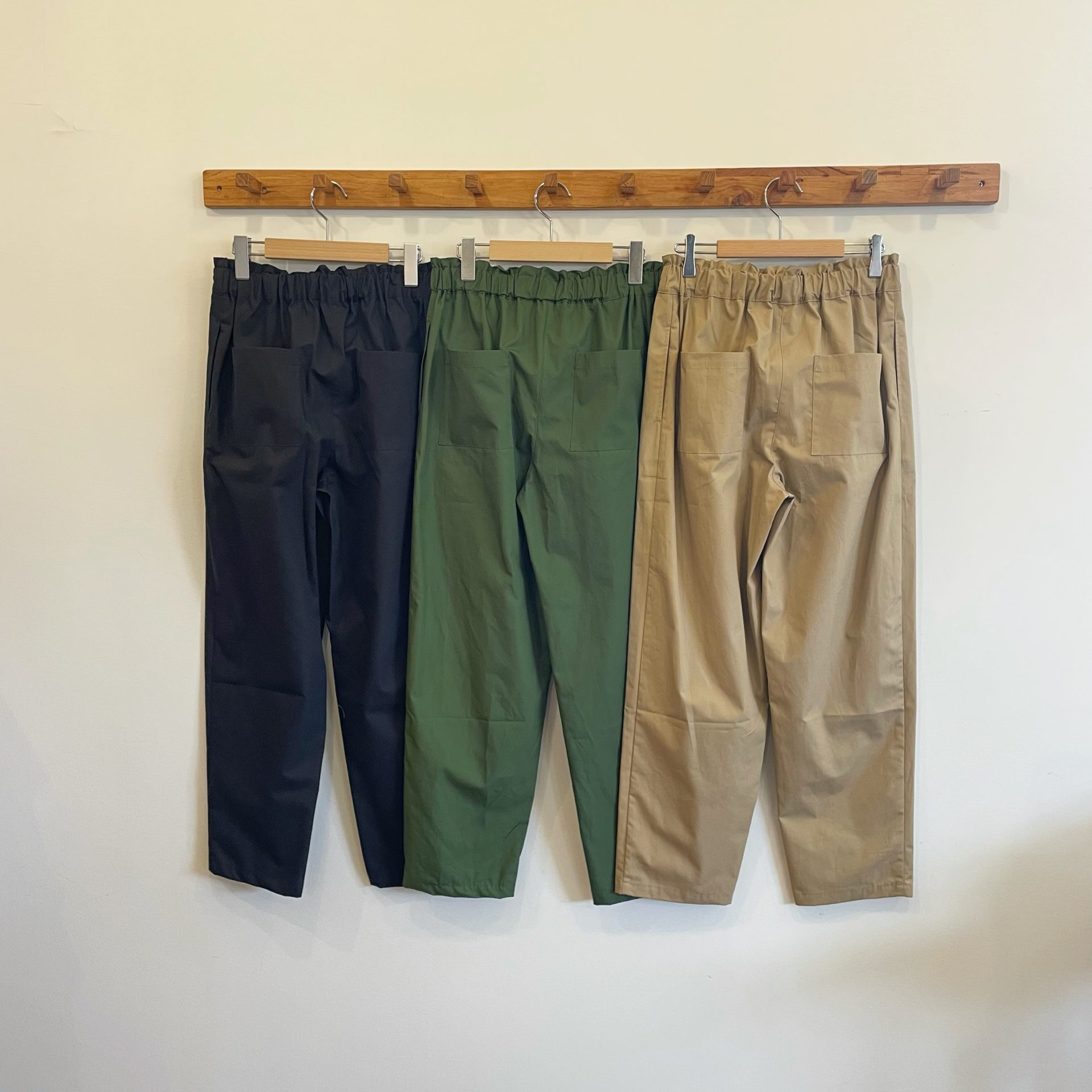 Bico ynir コットンポプリンテーパードイージーパンツ 透け感なく程よいハリ感のコットンポプリンの素材です♪ ウエストはゴムと紐でラクチンで、スッキリとしたボトムですよ! コットン 100% 14,080yen 2024-05-30 by chabbit ynir < grin OLDMAN’S TAILOR >