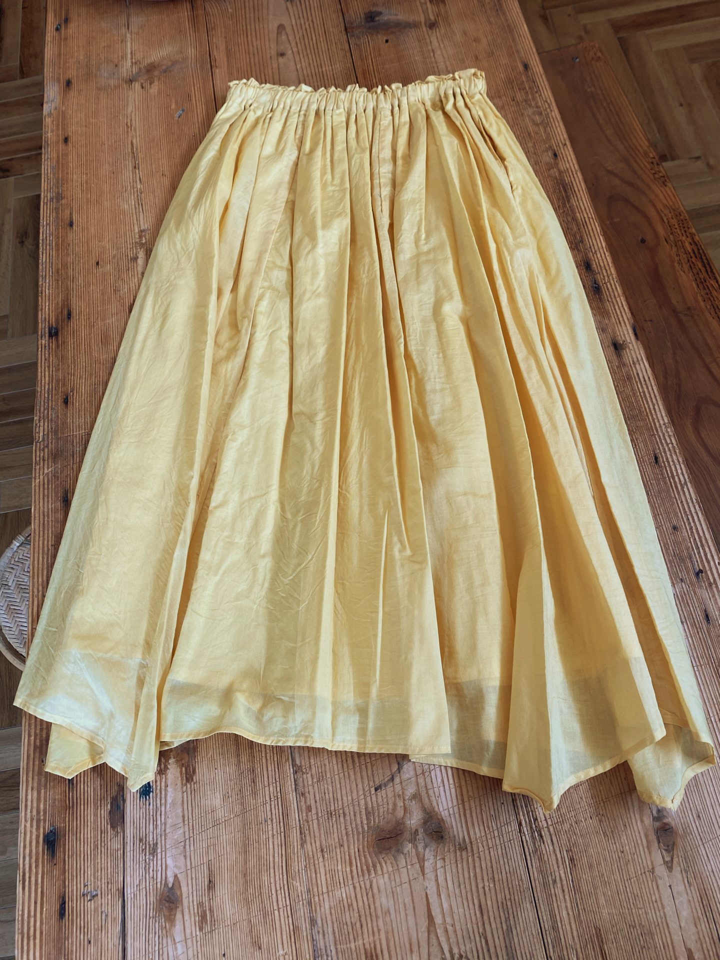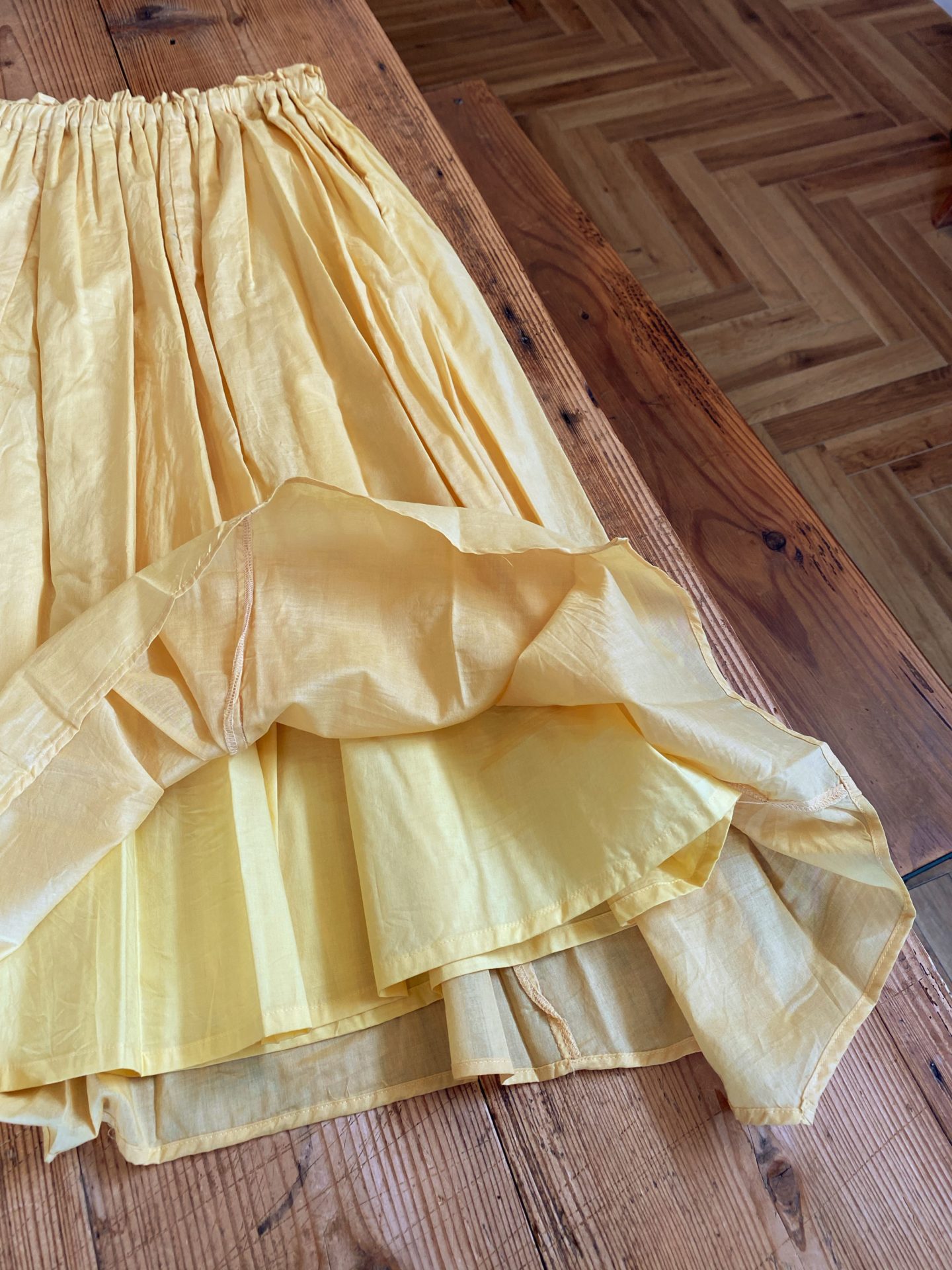 ウエストはゴムと紐で調整、薄くて軽い生地が涼し気で素敵なスカートです☆