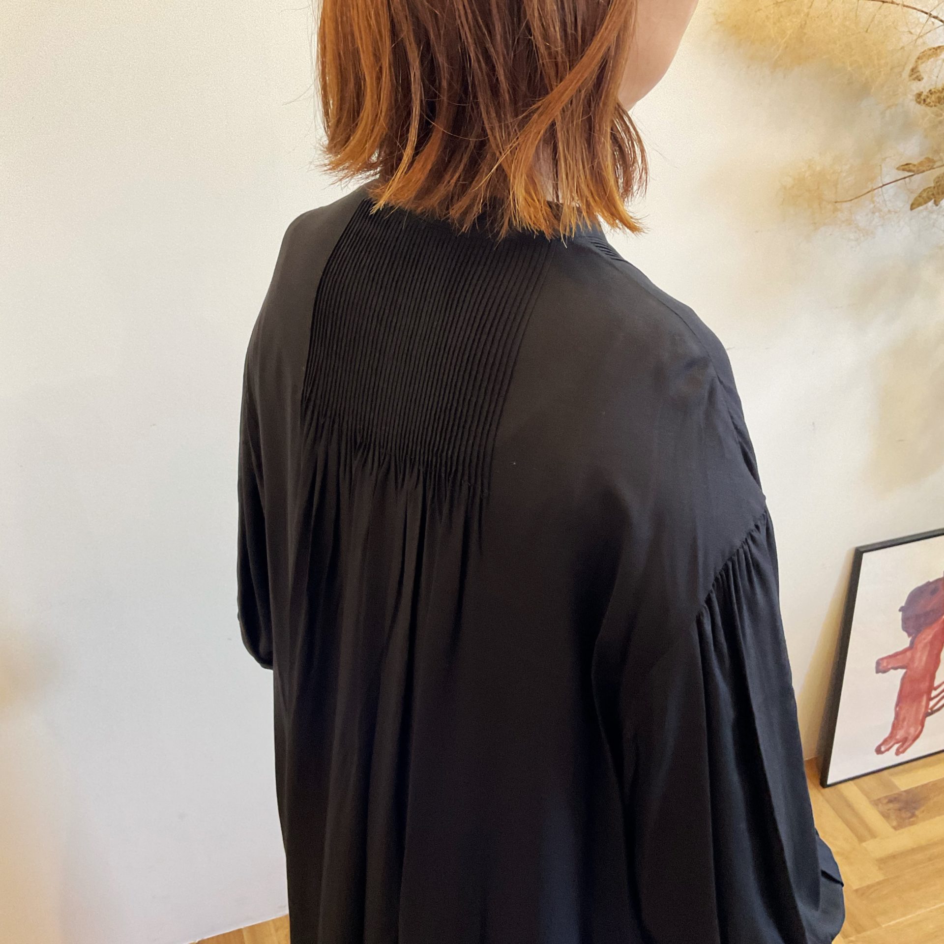 Bico utilite ピンタックシャツワンピース シルクの様な肌触りで光沢感のある素材を使用しているので高級感があり、 ピンタックが印象的な上品なシルエットのワンピースです。 コットン100%のペチキャミソールがついています。 レーヨン 100% 27500yen モデル 身長154センチ 2024-08-17 by chabbit utilite < utilite utilite >