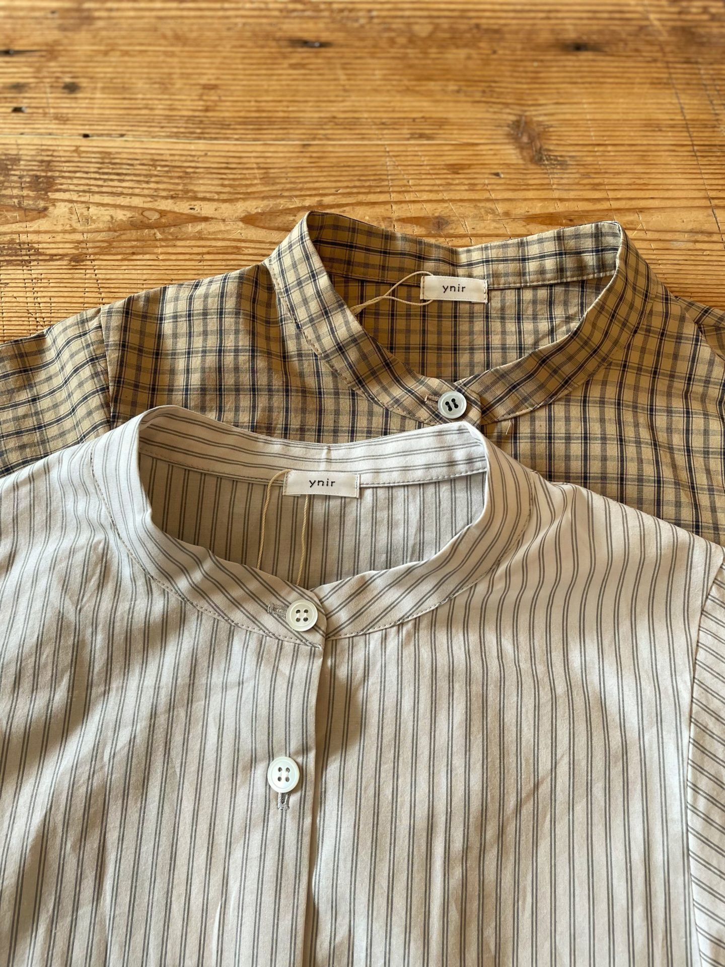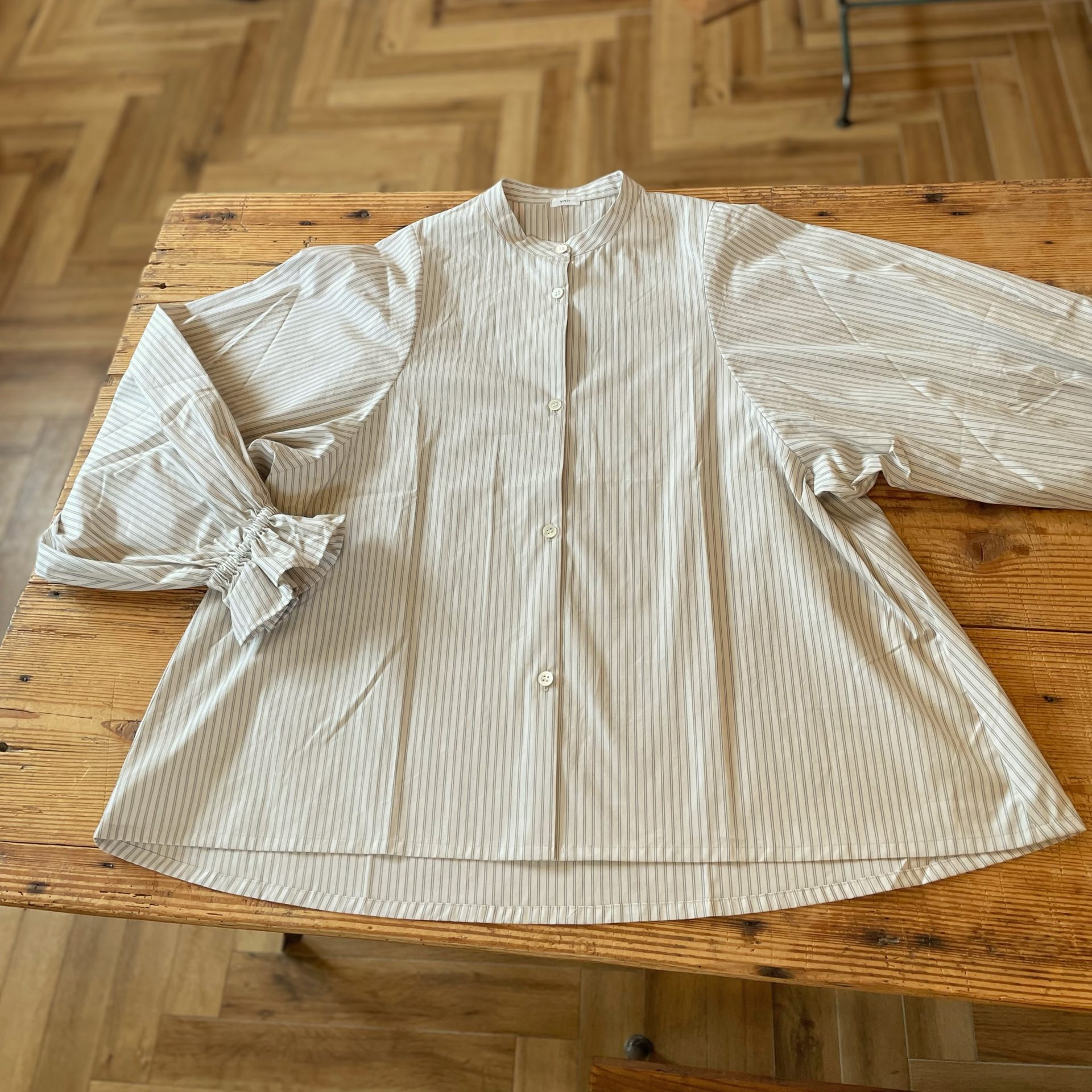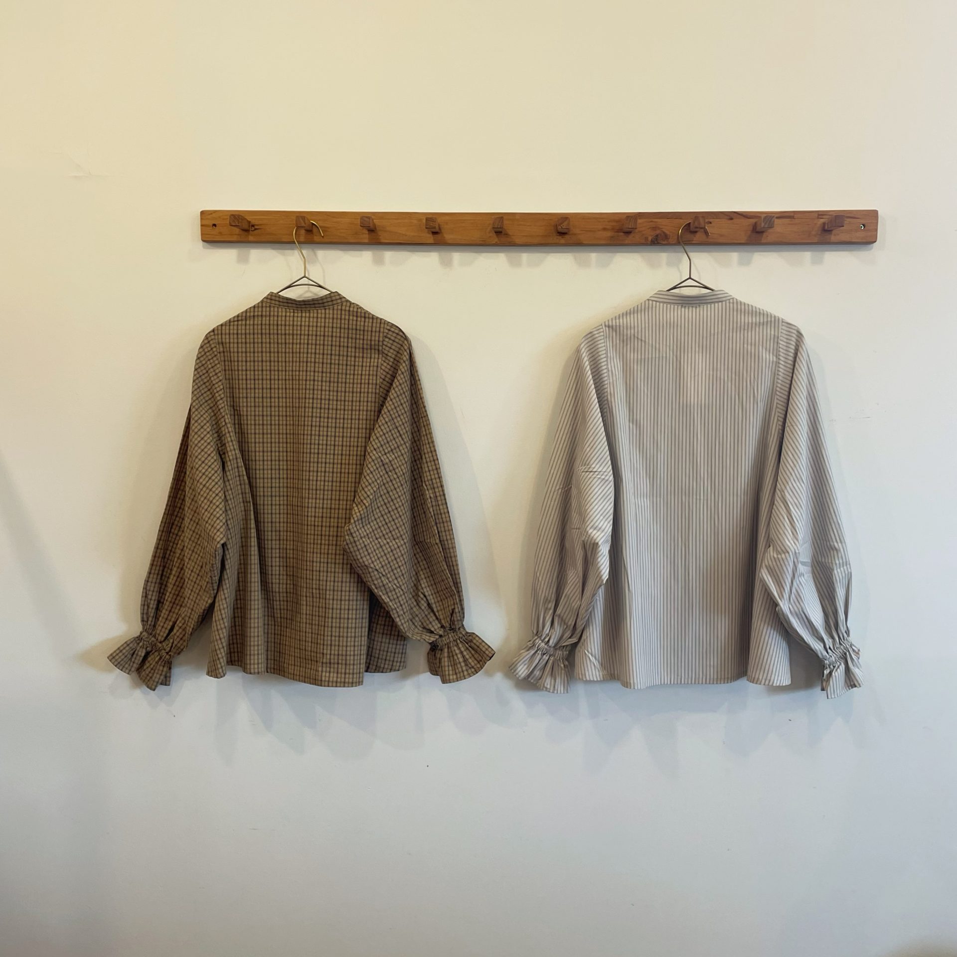 Bico ynir フリルスリーブブラウス チェックとストライプのシャツです♪ 存在感のある1枚ですよ☆ cotton 100% 16,500yen 2024-08-24 by chabbit ynir < ina mao made >