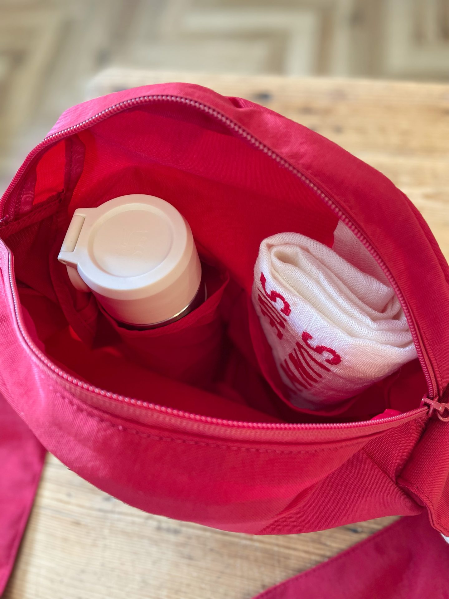 収納力もあり、内側にはペットボトルも入れるスペースがありますよ!