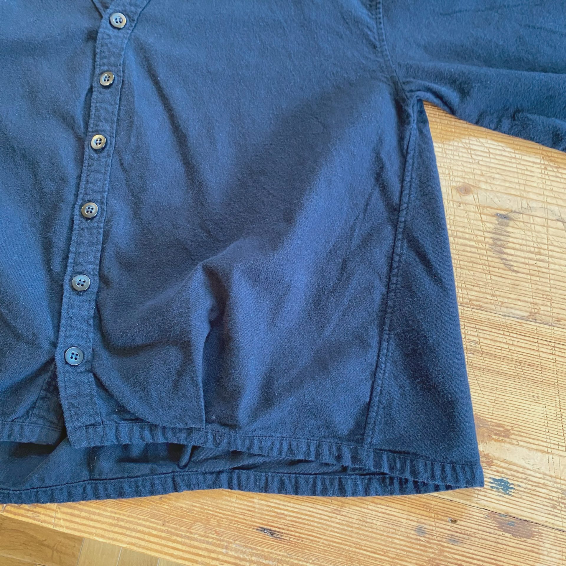 Bico Brocante カルディガンシャツ 首元はVネックのカーディガンデザインのシャツです♪ 身幅はたっぷりとしており裾にはタックを施してコクーンシルエットです。 前後差のある着丈でバランスのとれた1着です。 肌寒い朝晩にサラッと羽織るのにオススメです☆ 綿 100% 16500yen 2024-09-23 by chabbit Brocante < sublime YAMMA >