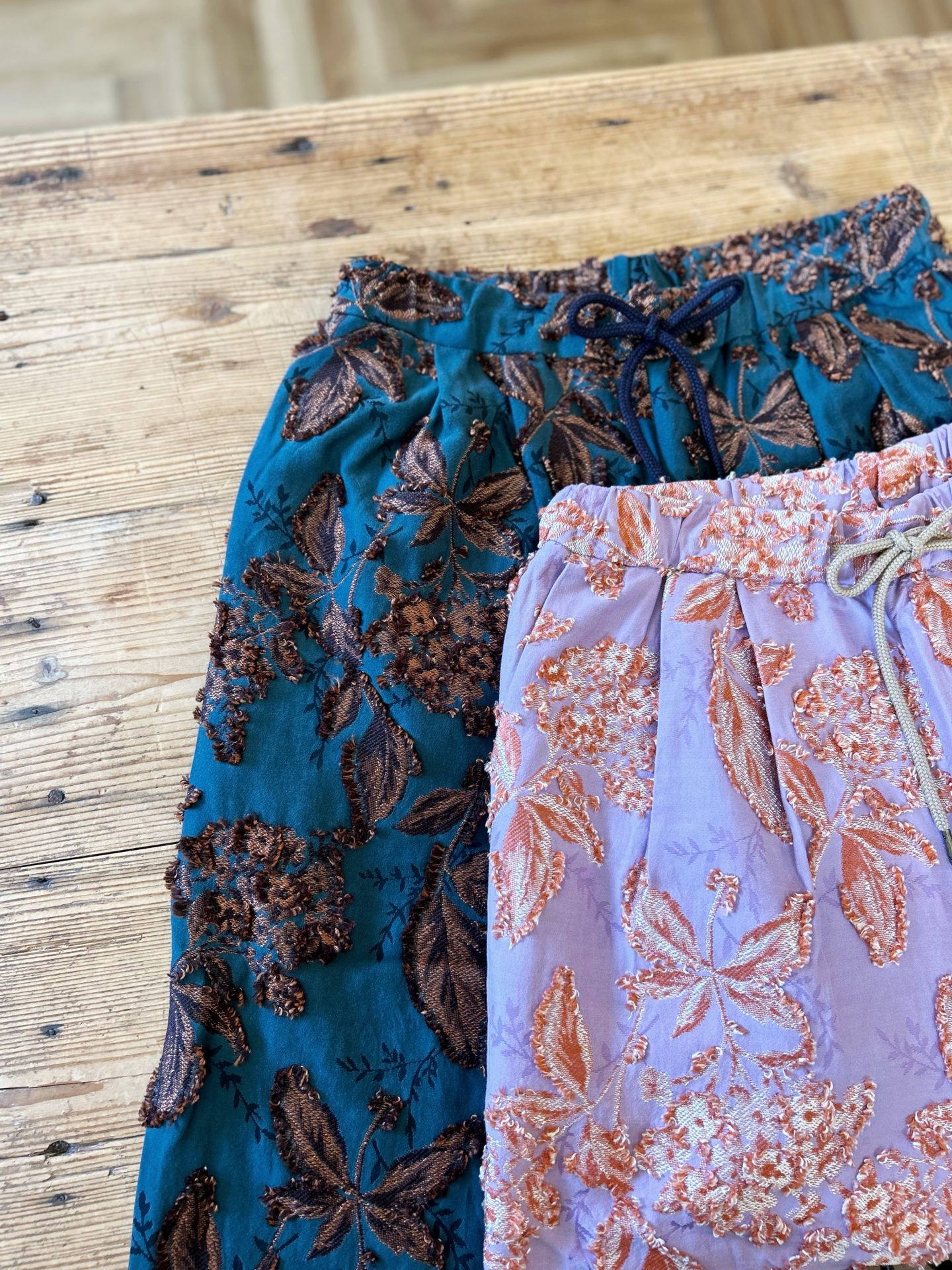 深く発色がきれいなフラワージャカードを贅沢に使用したパンツが入荷しました♪