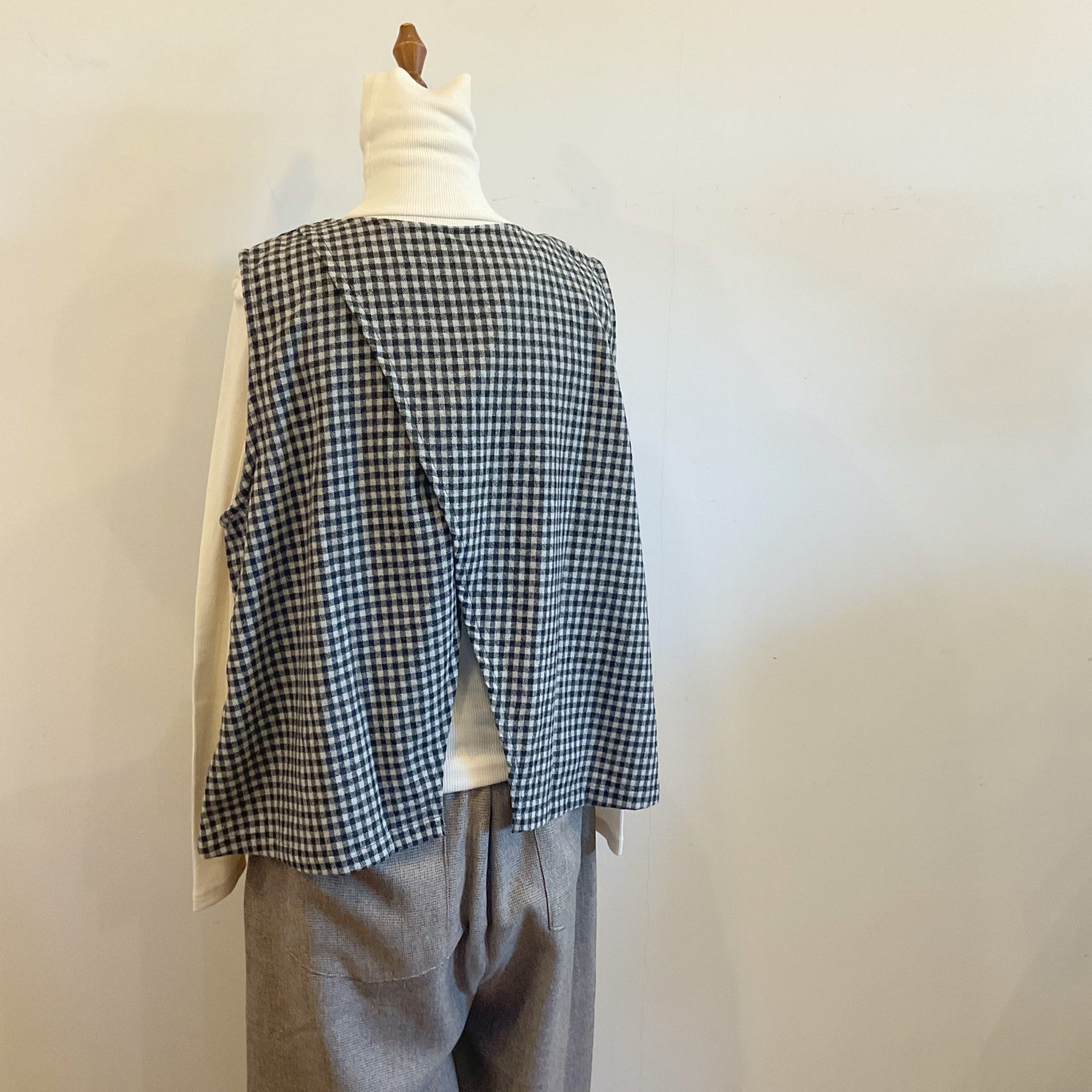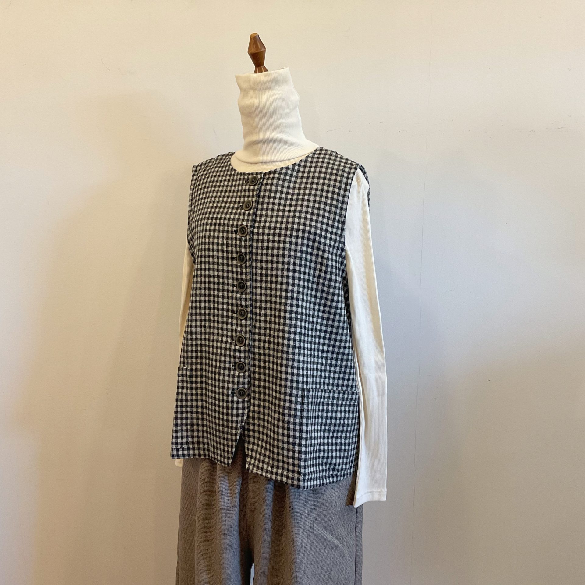 Bico ina 後ろ切替ボタンベスト 後ろに切替があるので、ワンピースの上から着たりカットソーの上から着たり、いろんな着方を楽しめる1枚です☆ 毛90% ナイロン10% 14,300yen 2024-10-12 by chabbit ina < TRAVAIL MANUEL YARRA >
