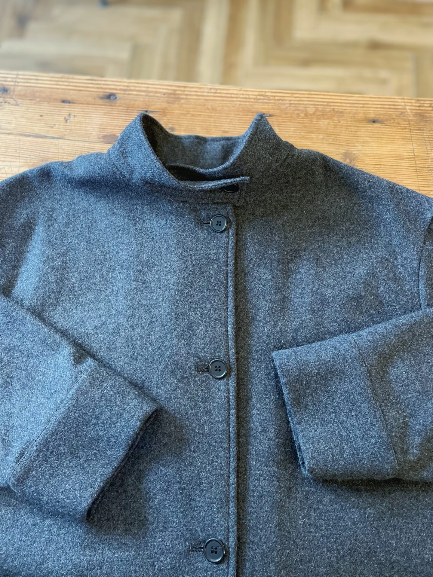 Bico ina スタンドカラー後ろタブ付きコート すっきりとした形で、大きいポケットが特徴のコートです♪ 毛75% ポリエステル15% アクリル5% ナイロン5% 103cm 25,300yen 2024-11-02 by chabbit ina < ina ina >